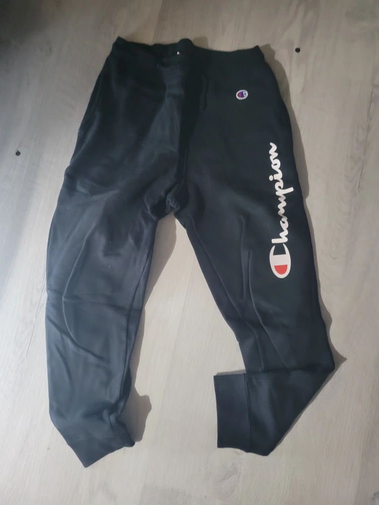 Selling a pair of Champion sweatpants in black! They feature the classic Champion logo on the side. Great for lounging or working out!