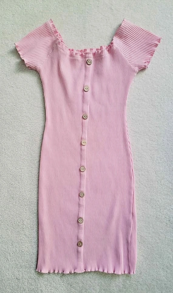 Brand new Ardene dress, pink with buttons and ribbed details. Size M, fits like a medium and has stretch. Originally purchased for $29.99, asking $10 or best offer. Never worn.
