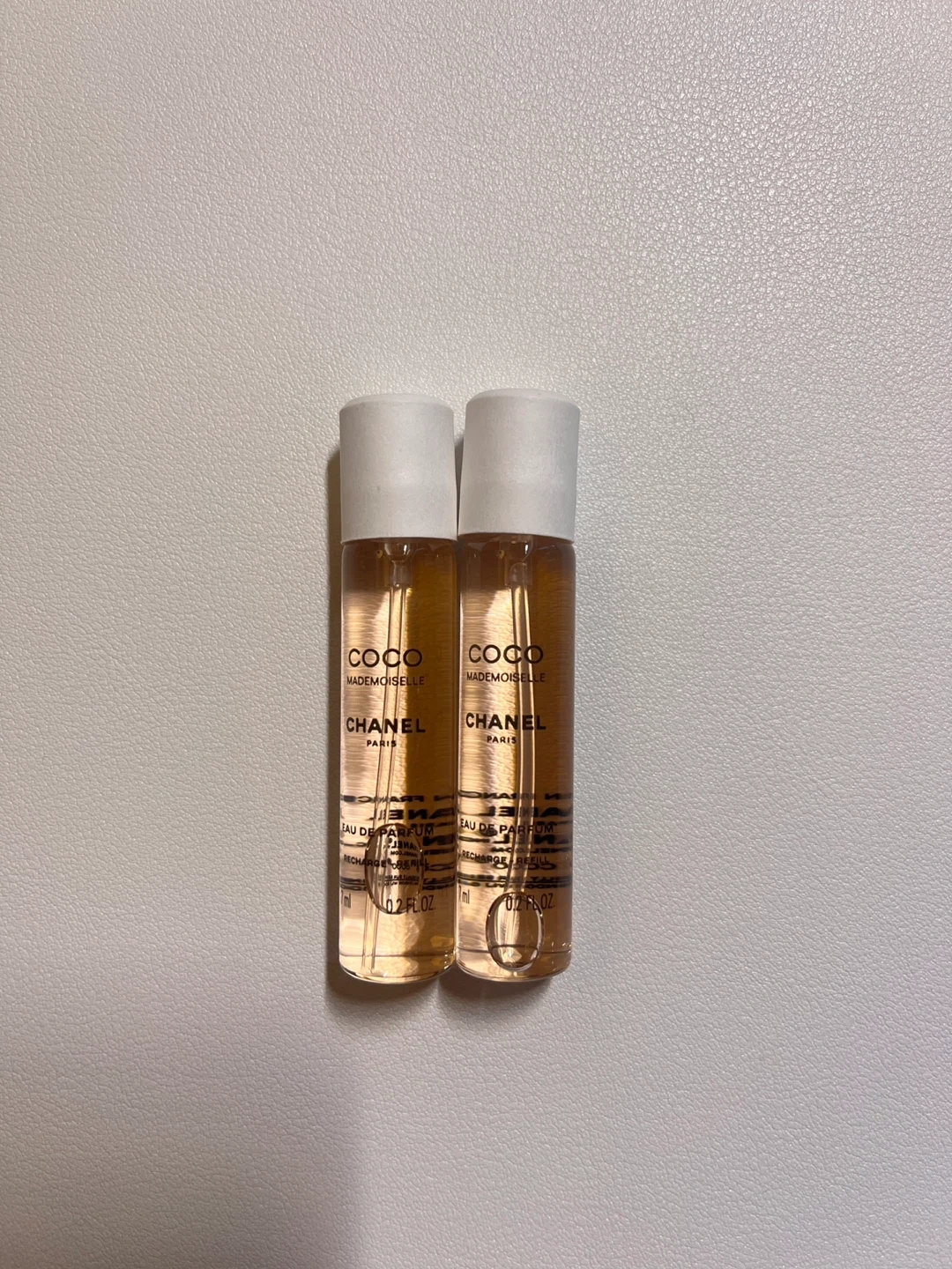 This is a set of two CHANEL COCO MADEMOISELLE Eau de Parfum purse spray refills. Each bottle contains 7ml of fragrance. It's a portable size for touch-ups on the go!