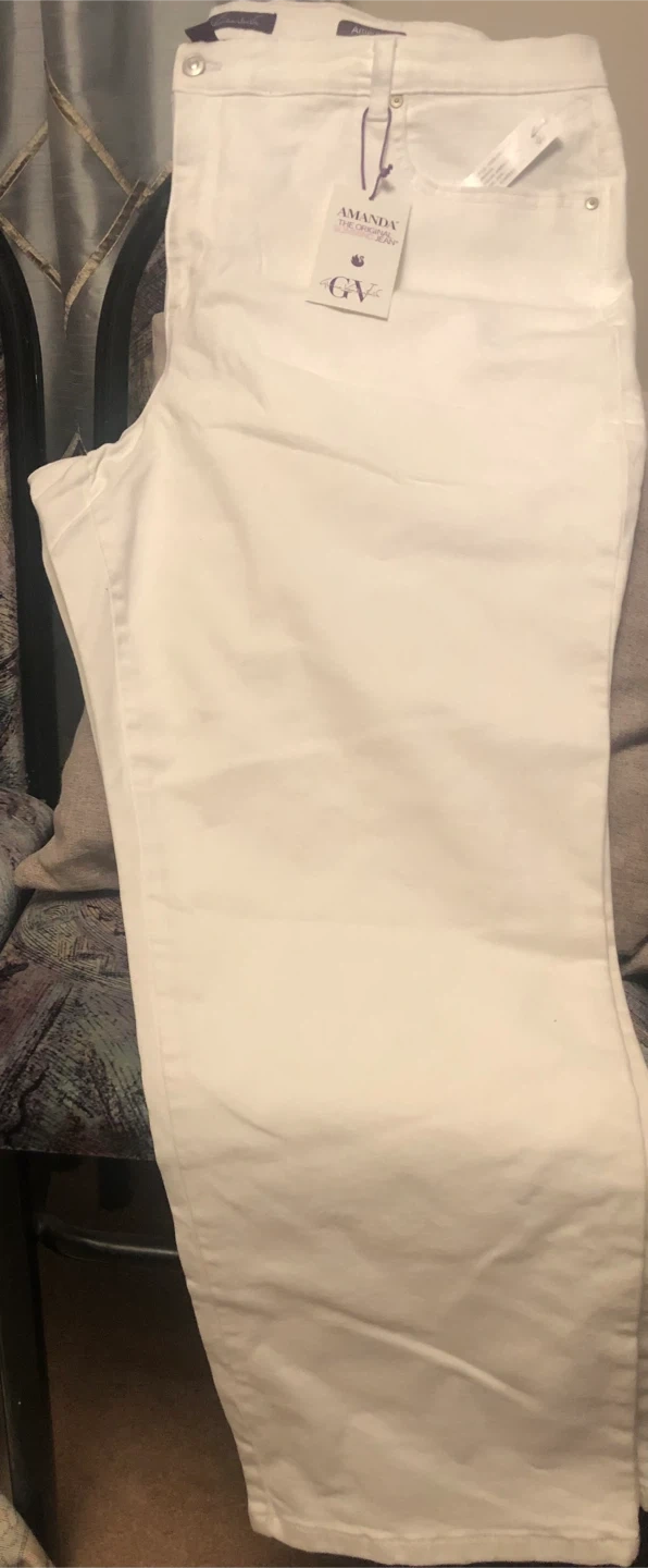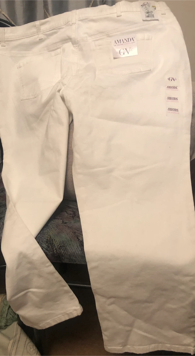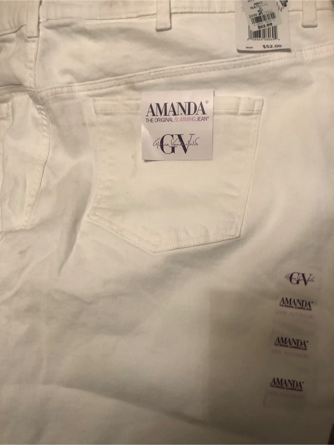 women's white Amanda slimming jeans. Style: AMANDA. Size 24W. Made in Jordan. These are the original slimming jeans.