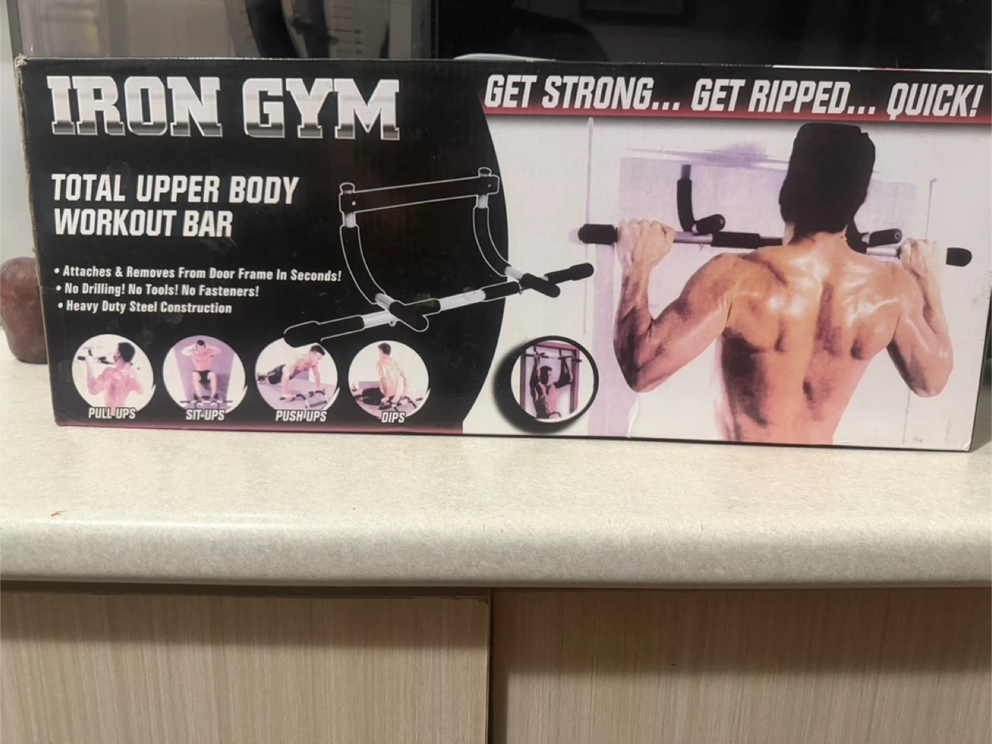 This Iron Gym is a total upper body workout bar. It attaches and removes from door frames in seconds with no tools or fasteners. Heavy-duty steel construction makes it durable. It's useful for pull-ups, sit-ups, push-ups, and dips!