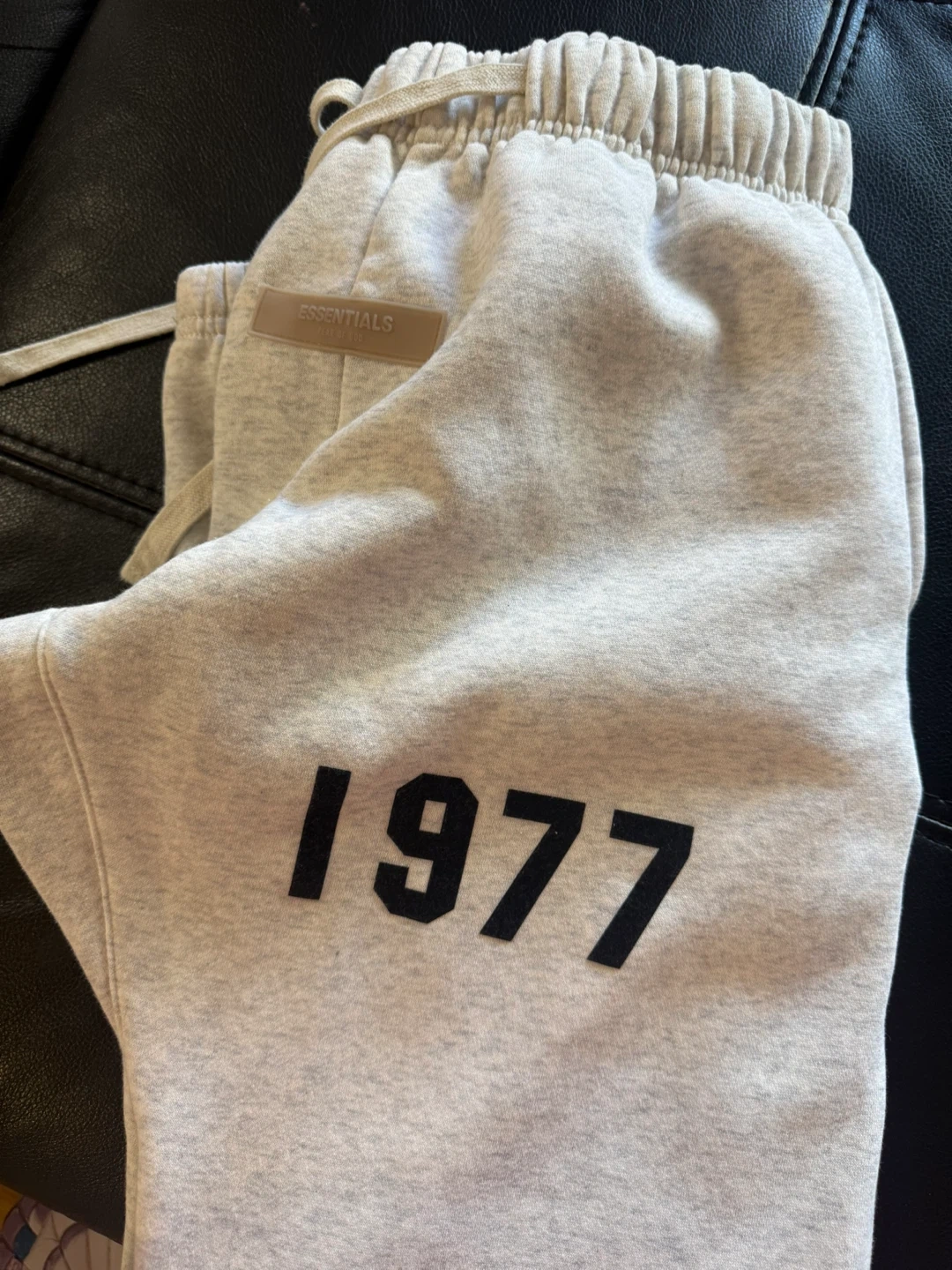 Buy & SellEssentials -Fear of god sweatpantsEssentials -Fear of god sweatpants$50Grey heather sweatpants from Fear of God Essentials featuring the "1977" graphic. Made in Vietnam. Size large.SizeLBrandEssentials WHERE TO MEET1060 Caven streetView MapSELLERverifiedMarsyLakeview31226 reviews0 chats·0 favorites·3 viewsSEND CHAT TO SELLERHi Marsy! I’m interested in your listing.Hi Marsy! I’m interested in your listing.Get the Karrot app to chatSign In to chat