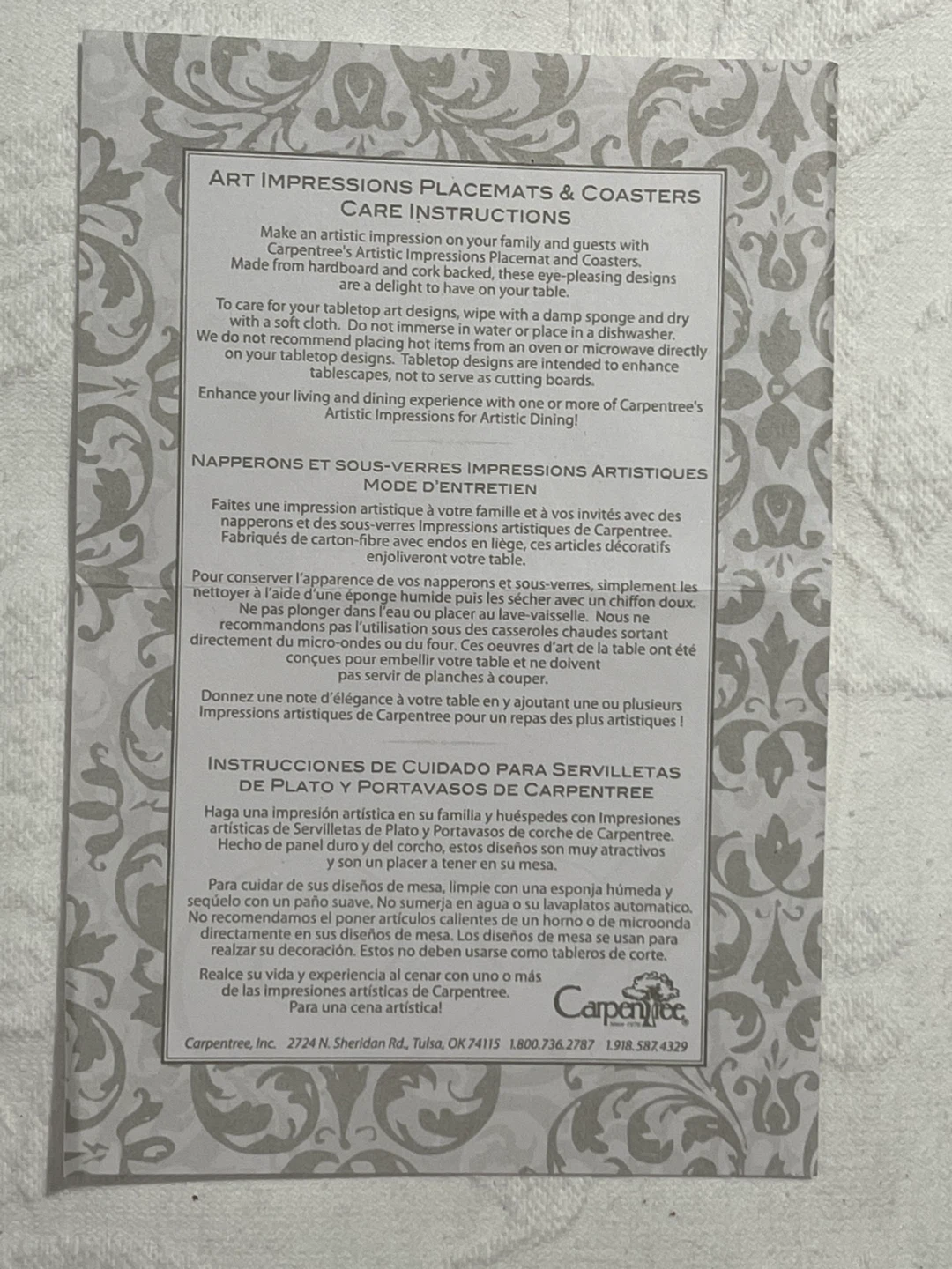 Carpentree Artistic Impressions Placemats & Coasters