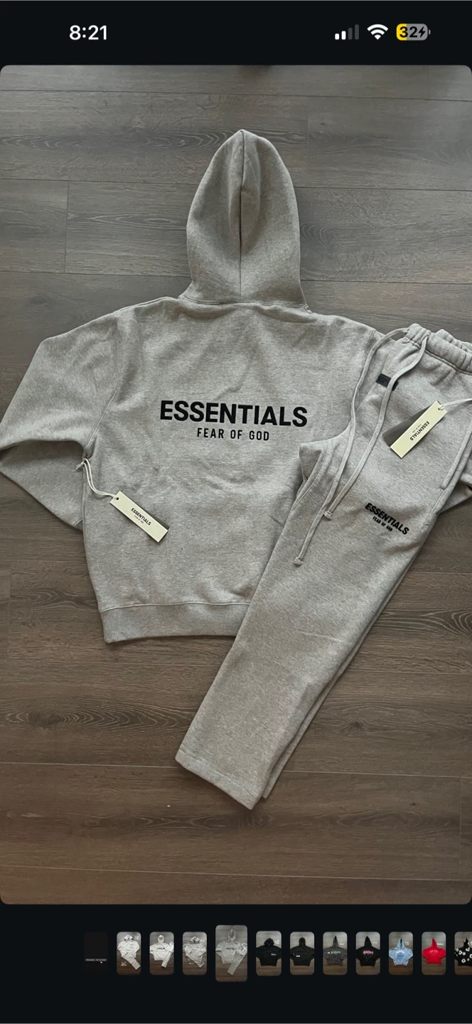 Selling an Essentials Fear of God hoodie and sweatpants set! The set is in excellent condition. Available in size small. The hoodie and sweatpants both have the Essentials logo on them. Perfect for lounging or casual wear!