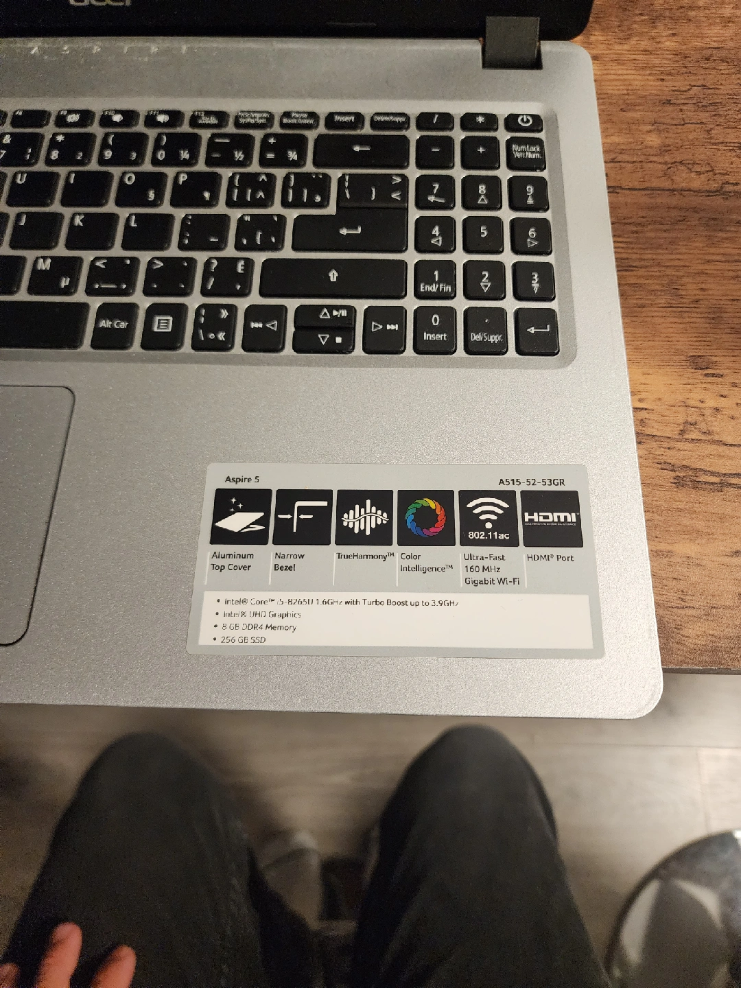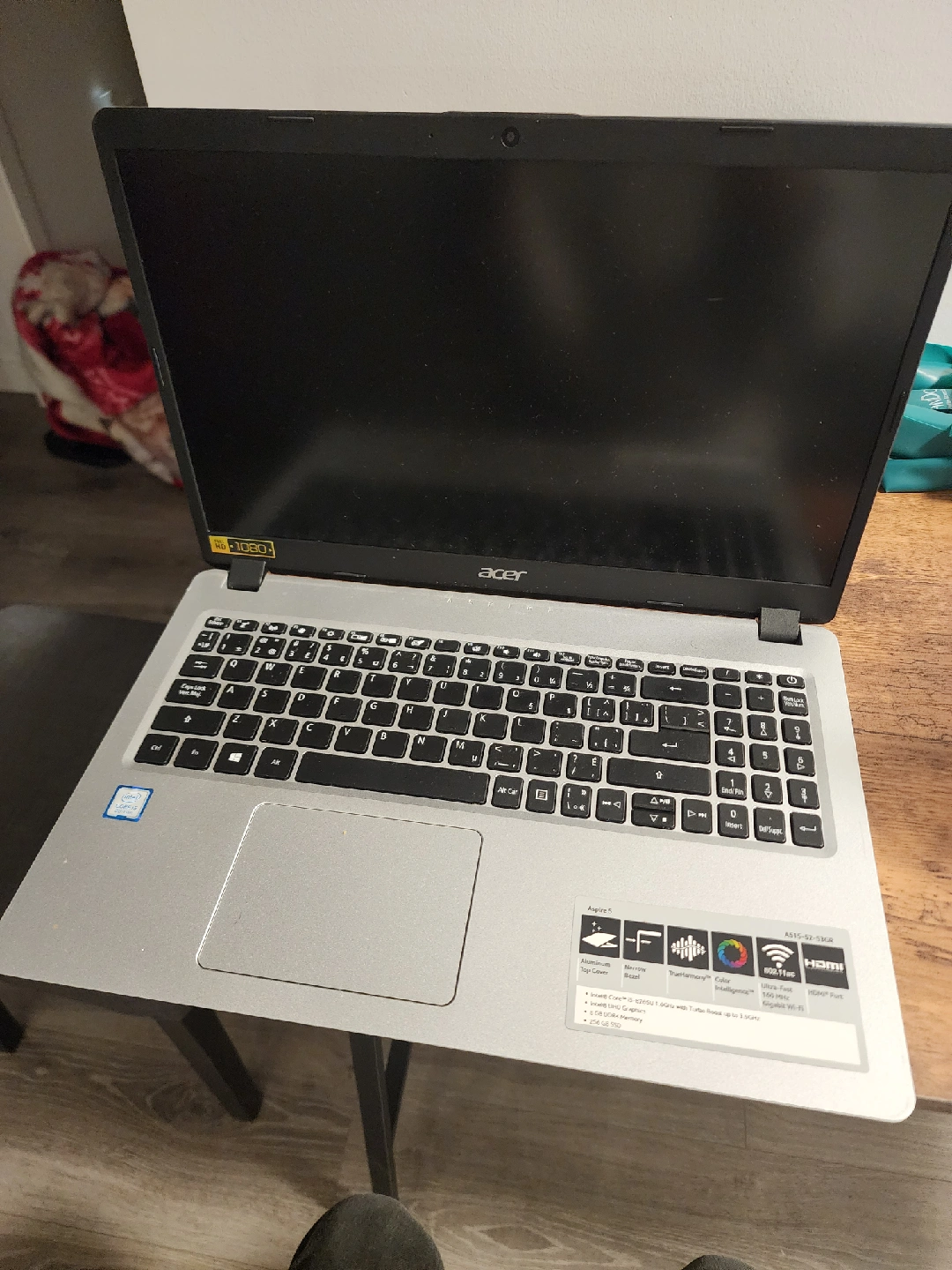 Selling an Acer Aspire 5 A515-52-53GR laptop. It features an Intel Core i5 8th Gen processor and 8GB of DDR4 memory. The laptop also has a 256 GB SSD. It has a Full HD 1080p display and 802.11ac Gigabit Wi-Fi