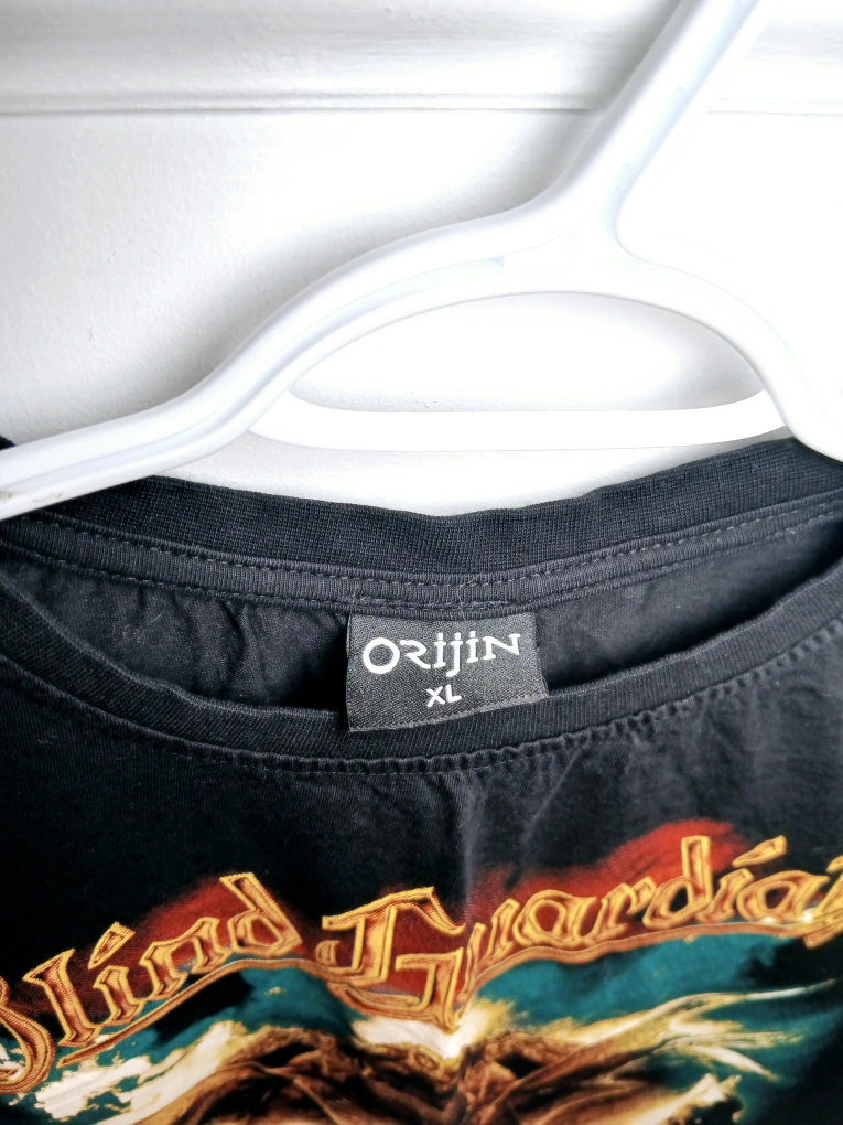 Selling a black Origin T-shirt featuring the band Blind Guardian. It's in great shape and a size XL. Available for pick up in Meadowvale area, closest intersection Brittania and Glen Erin