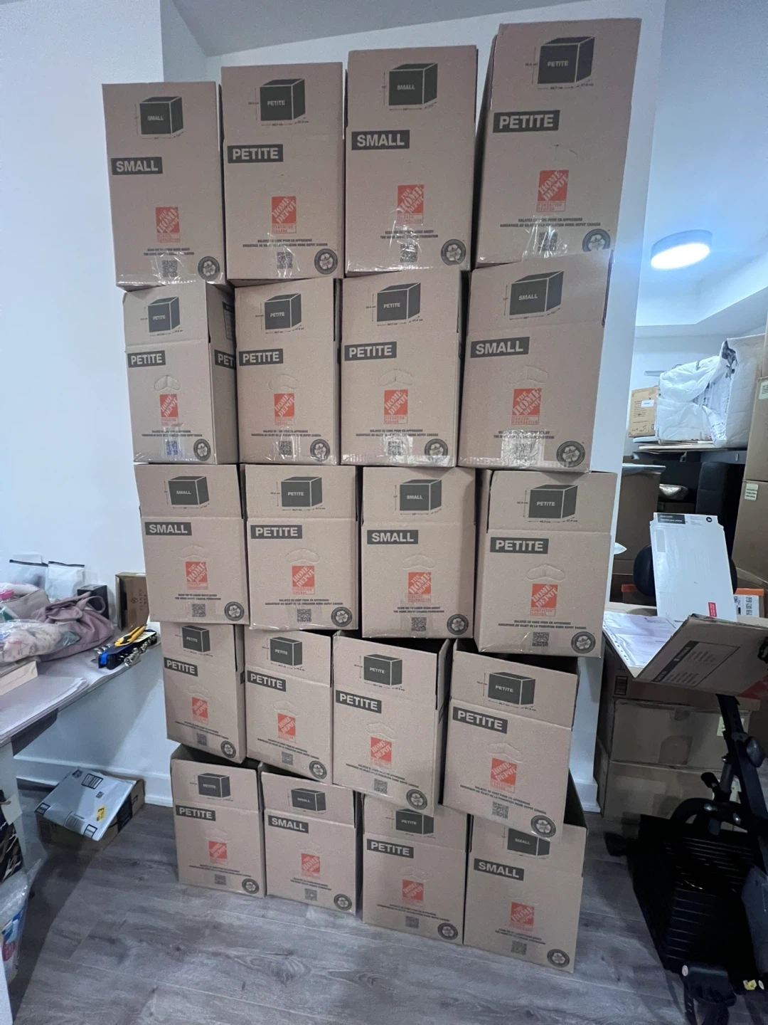 Small moving boxes from Home Depot (12” x 18” x 11”)