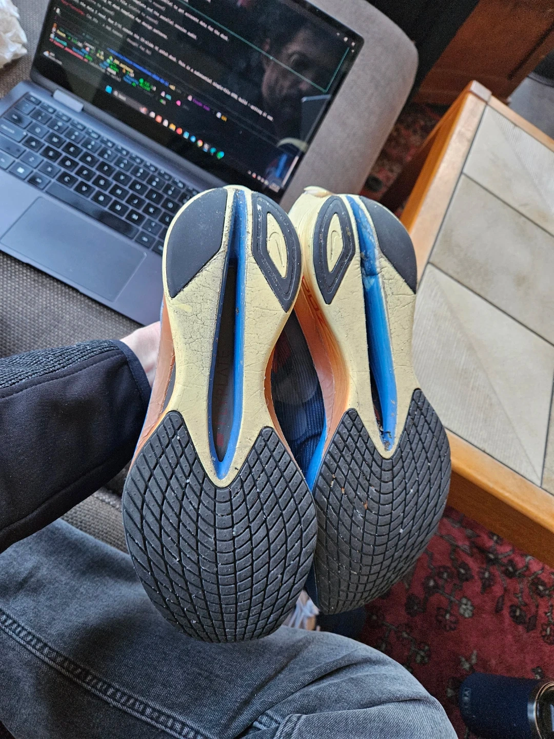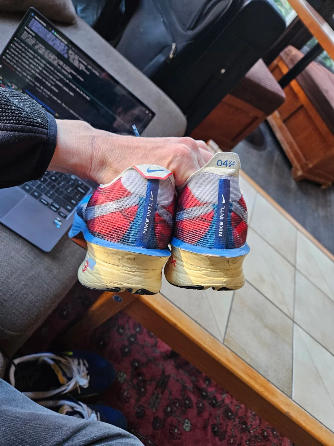 compressed. Outsole tread at 95%+.