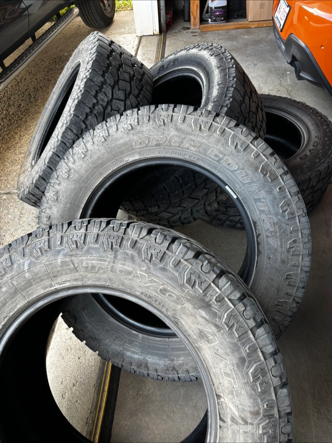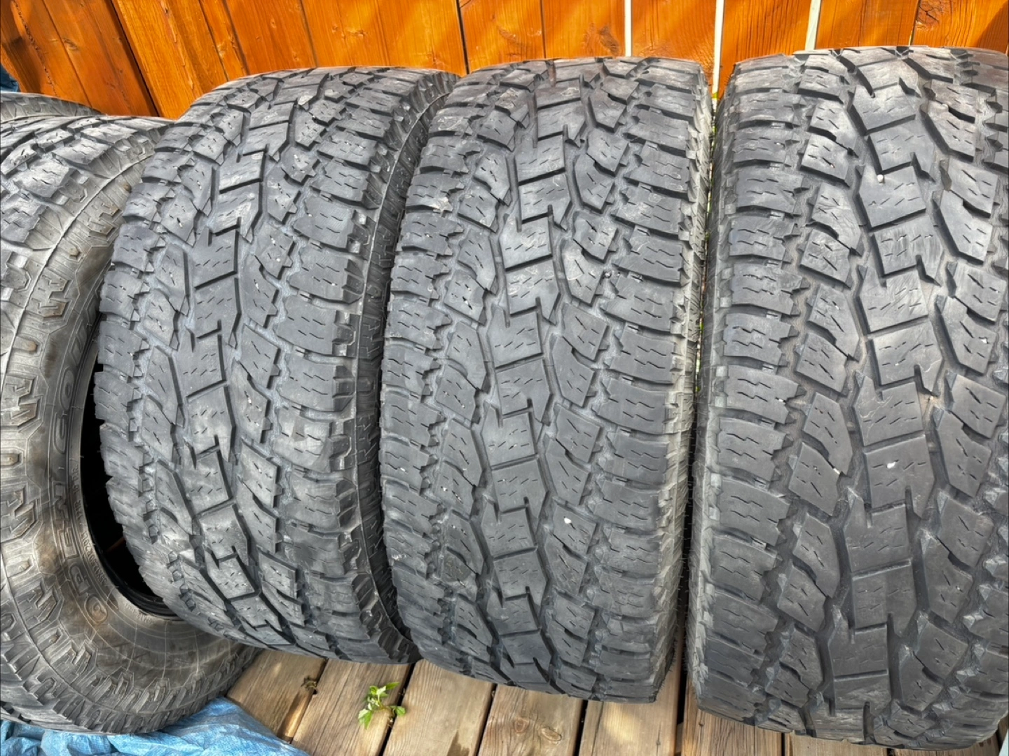 Selling a set of 5 Toyo Open Country A/T tires. The size is 35x12.50R20LT. They are in used condition but still have some life left in them. Perfect for your truck or SUV!