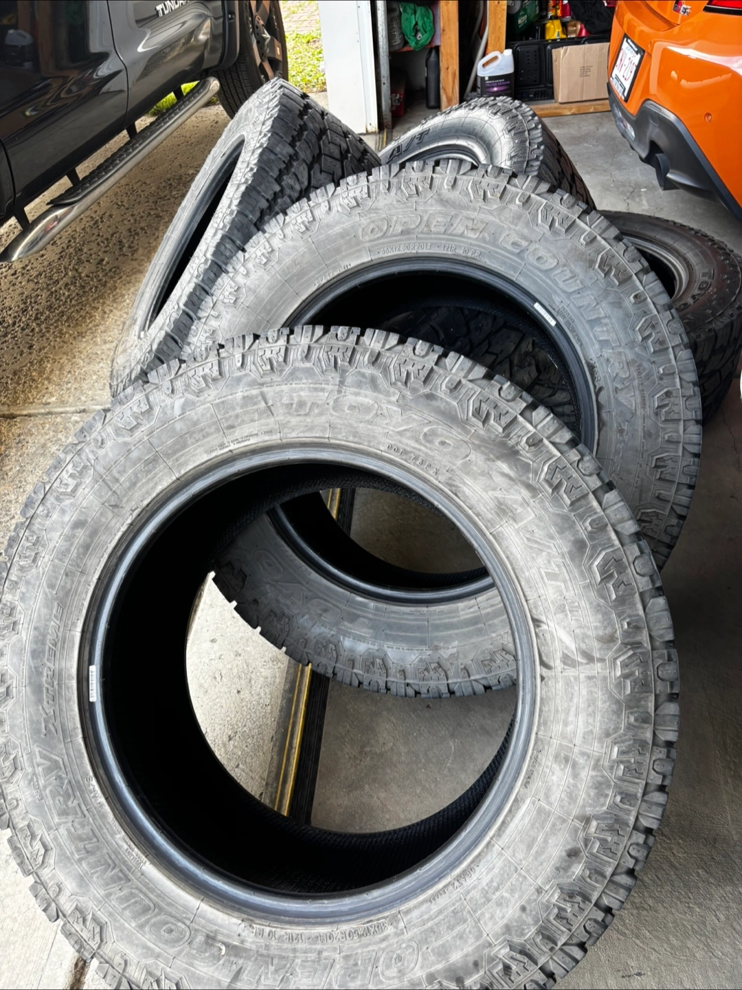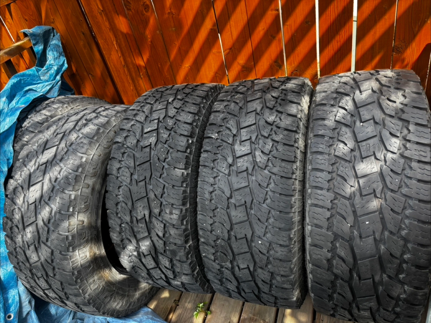 Selling a set of 5 Toyo Open Country A/T tires. The size is 35x12.50R20LT. They are in used condition but still have some life left in them. Perfect for your truck or SUV!
