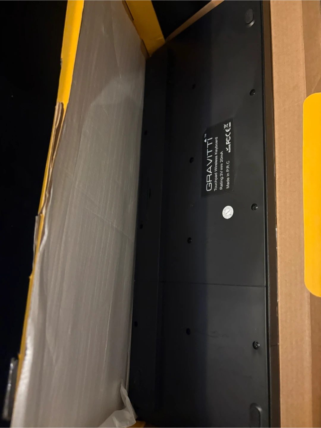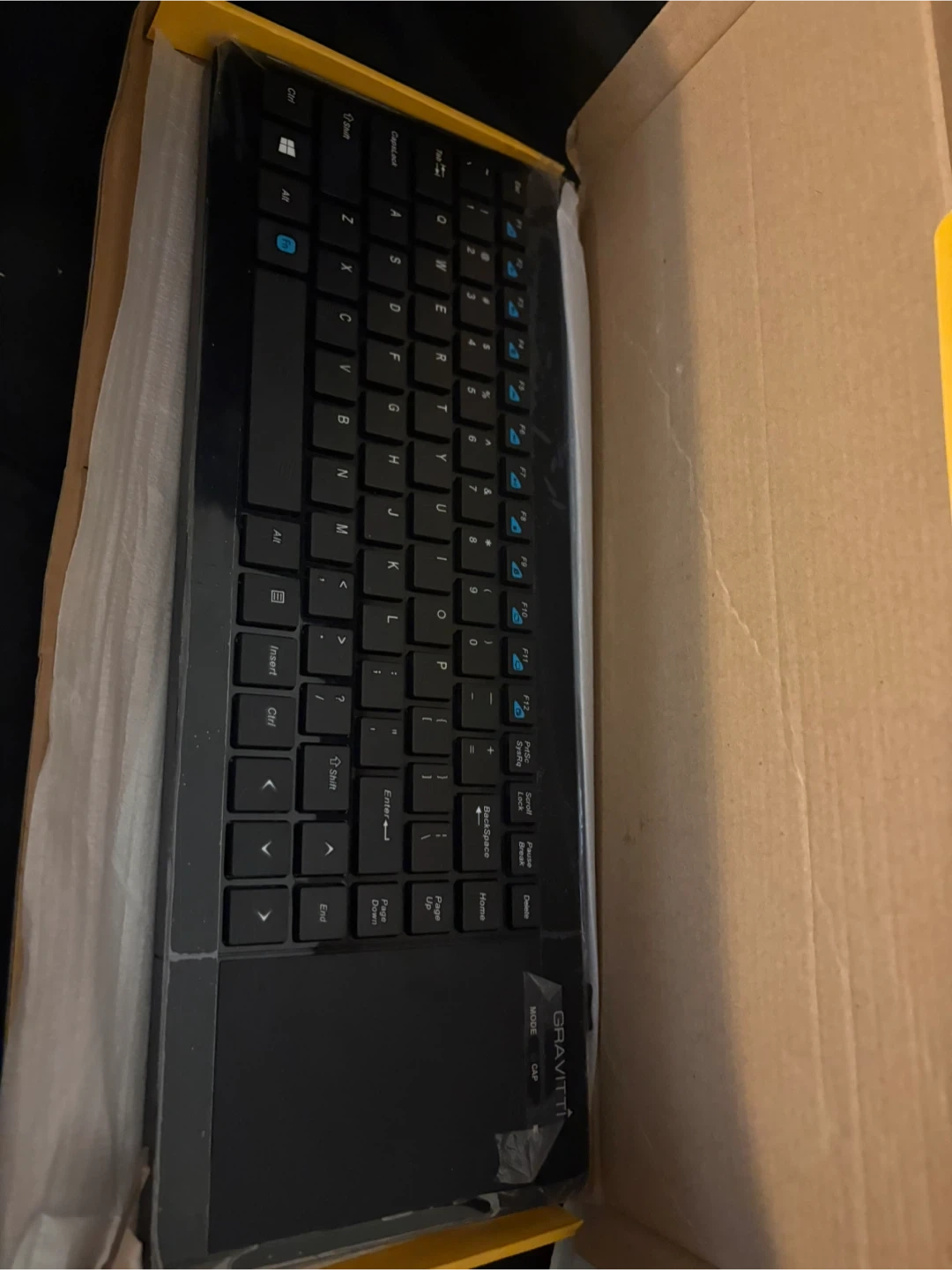 This is a GRAVITTI Wireless Smart TV Keyboard with a built-in touchpad. It's designed for multimedia use. It connects wirelessly and includes a USB receiver.