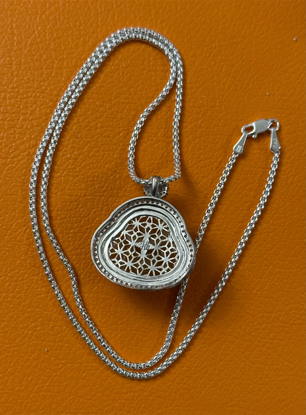 A lovely sterling silver necklace (925) featuring a carved rare golden jade Buddha pendant. The intricate filigree design on the back of the pendant adds a touch of elegance. It's perfect for everyday wear or as a unique gift! Unisex Fashion. With Certificate of Authenticity.