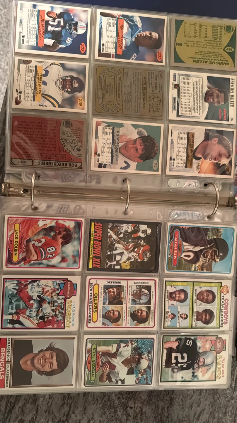 Selling a collection of vintage NFL football cards featuring various legendary players. Cards include players like Walter Payton, Troy Aikman, John Unitas, and many more. Great for any football memorabilia collector!