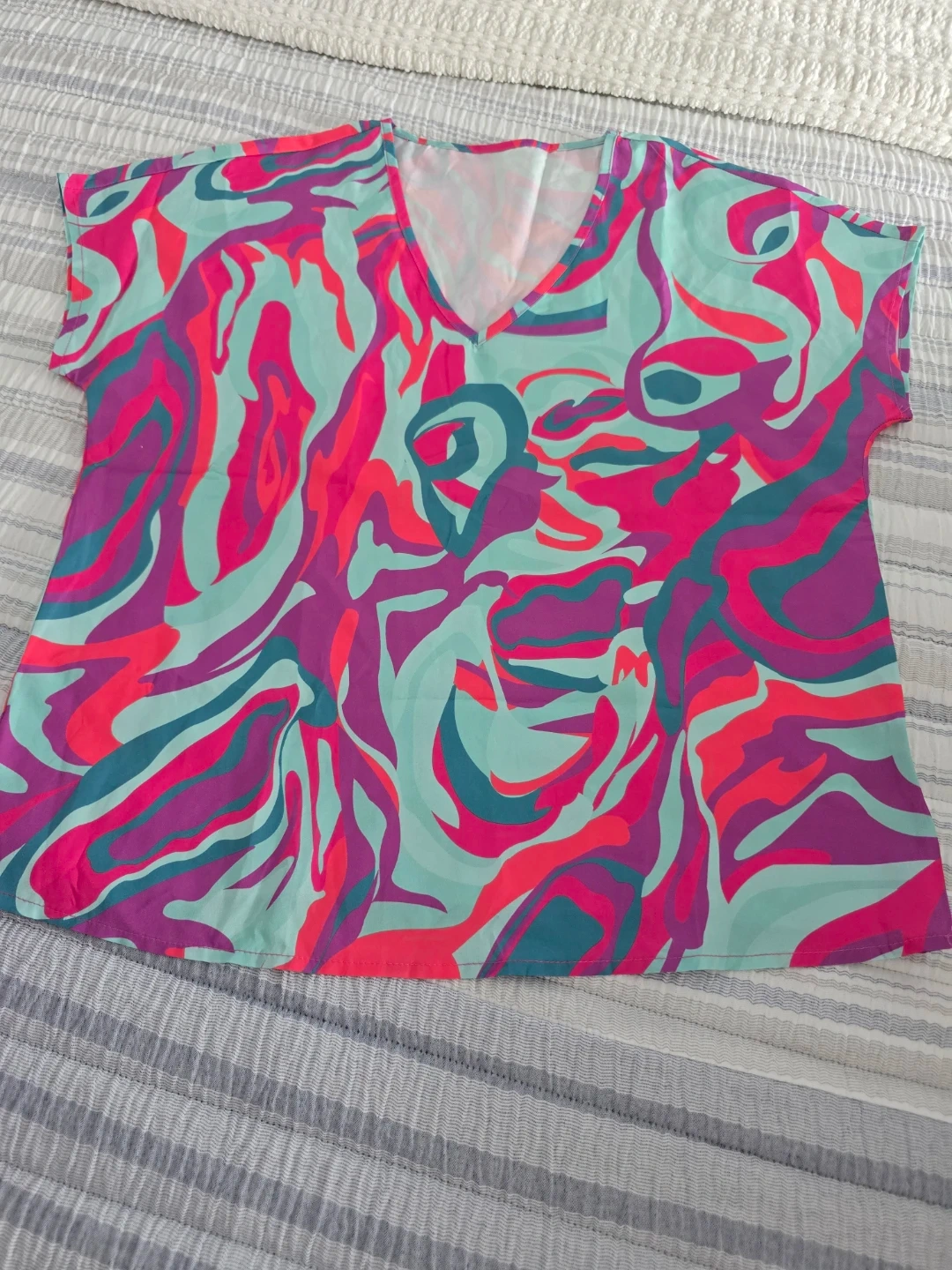 Selling a fun and vibrant top and pants set! The top has a colorful, abstract pattern, and the pants are a bright, solid pink. Both pieces are in great condition and ready for a new home!