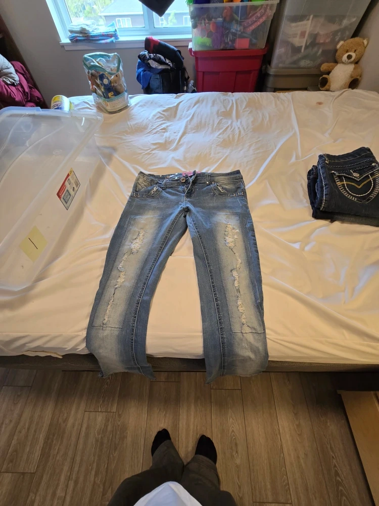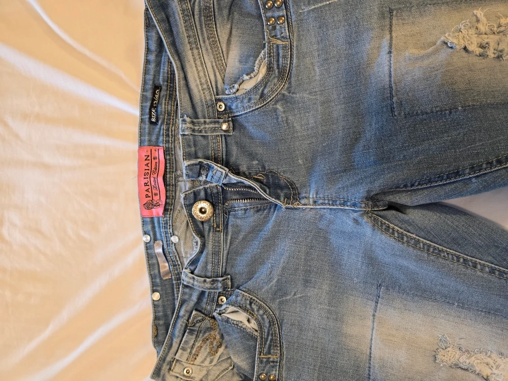Selling a pair of Parisian Bizza jeans in size 7/8. They have a light wash and a ripped design, giving them a stylish, worn-in look. Perfect for casual wear!