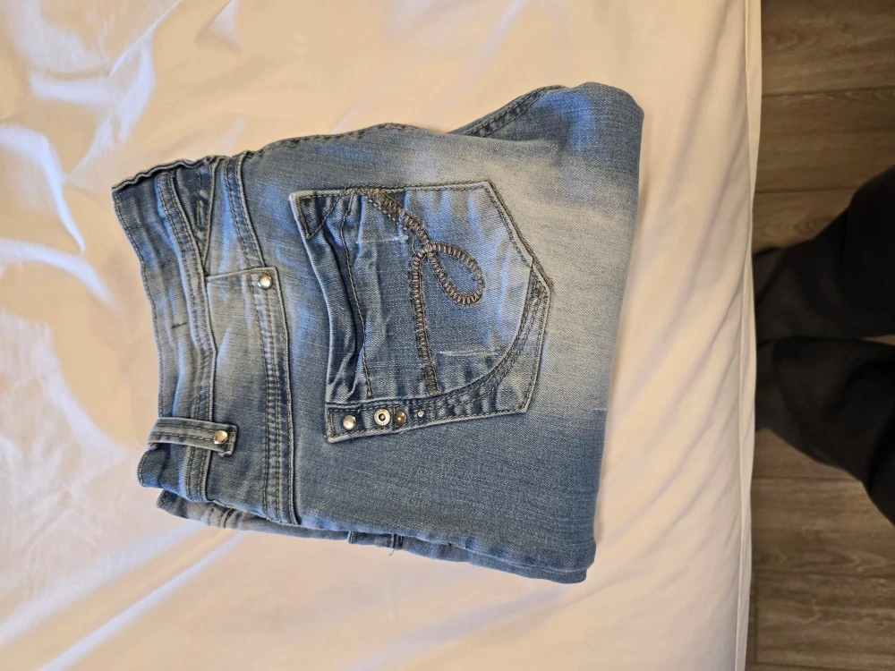 Selling a pair of Parisian Bizza jeans in size 7/8. They have a light wash and a ripped design, giving them a stylish, worn-in look. Perfect for casual wear!