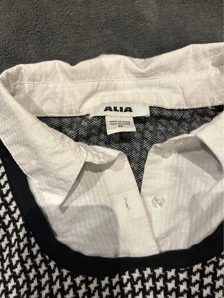 Alia Long Sleeve Button Up with Houndstooth Vest