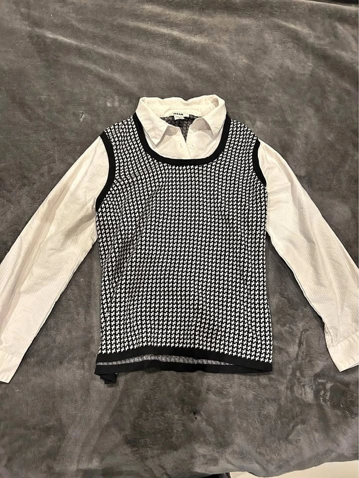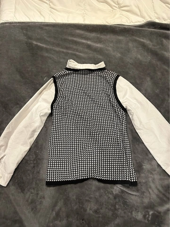 Alia Long Sleeve Button Up with Houndstooth Vest
