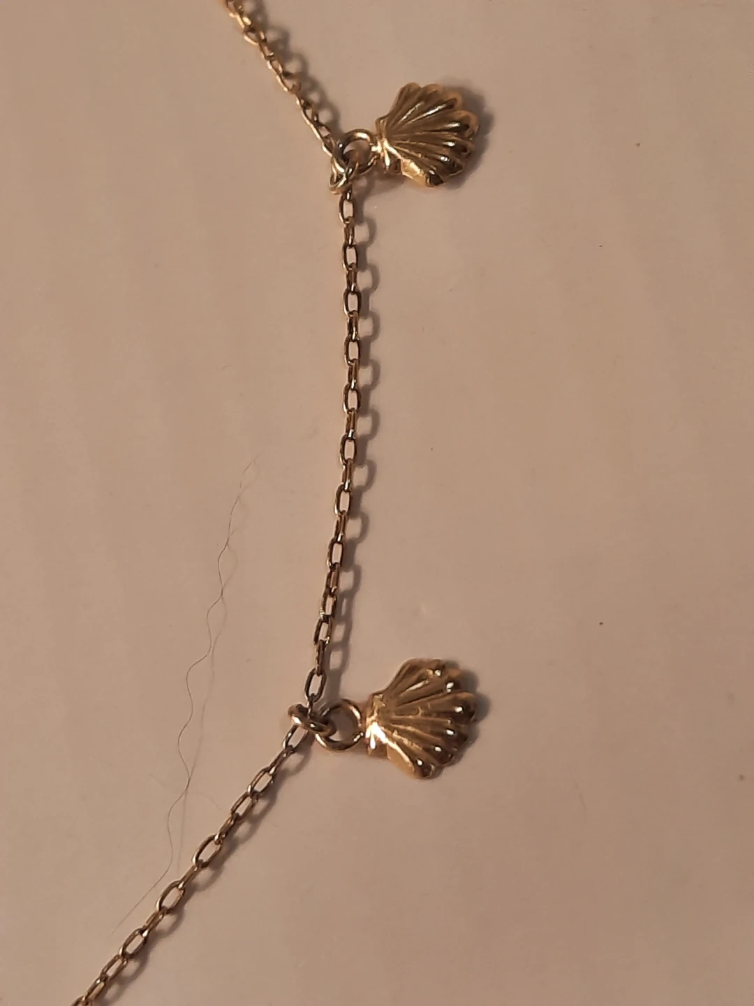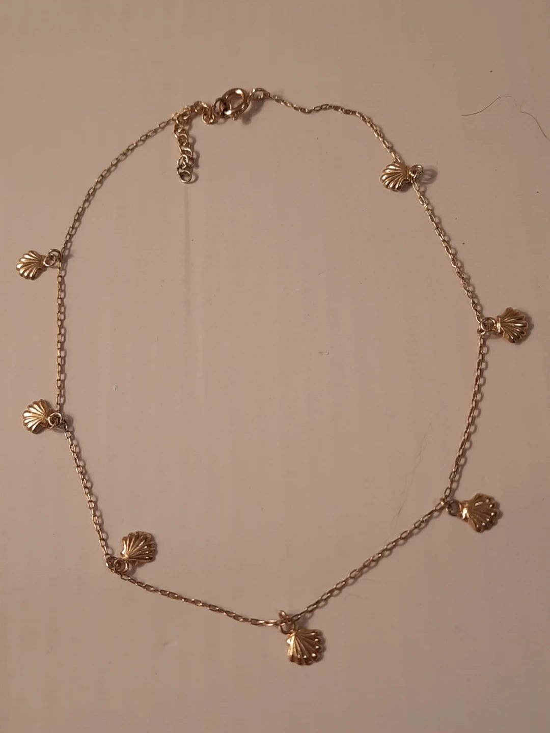 This anklet features a delicate gold-over silver 925 chain adorned with multiple seashell charms. It has an adjustable clasp for a comfortable fit. Perfect for adding a touch of coastal flair to your summer outfits!