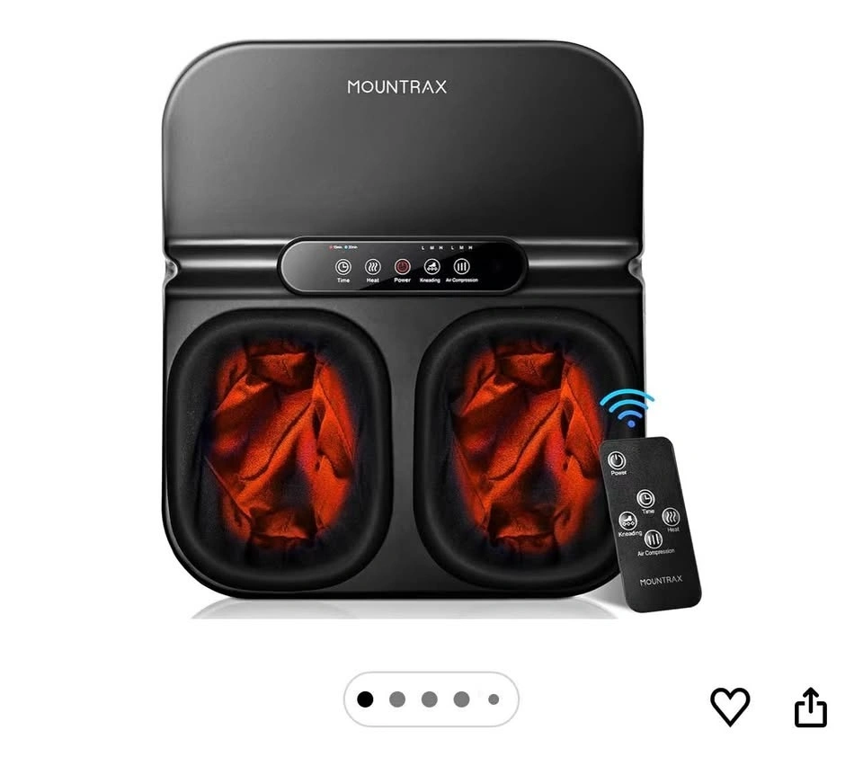 MOUNTRAX Foot Massager Machine with Heat, Shiatsu Foot Massager with Remote Control, Deep Kneading and Soothing Heat, Fits Feet Up to Men Size 12 (Black). Feel free to message if you have any questions!