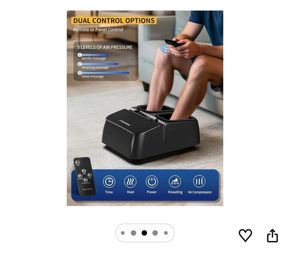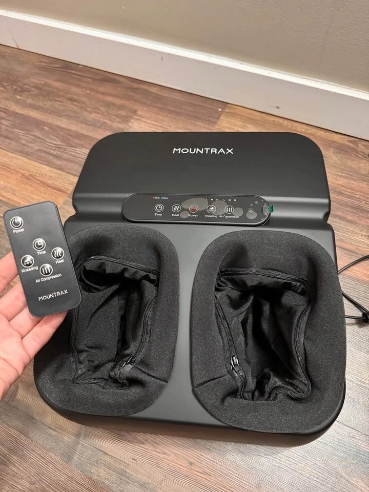 MOUNTRAX Foot Massager Machine with Heat, Shiatsu Foot Massager with Remote Control, Deep Kneading and Soothing Heat, Fits Feet Up to Men Size 12 (Black). Feel free to message if you have any questions!