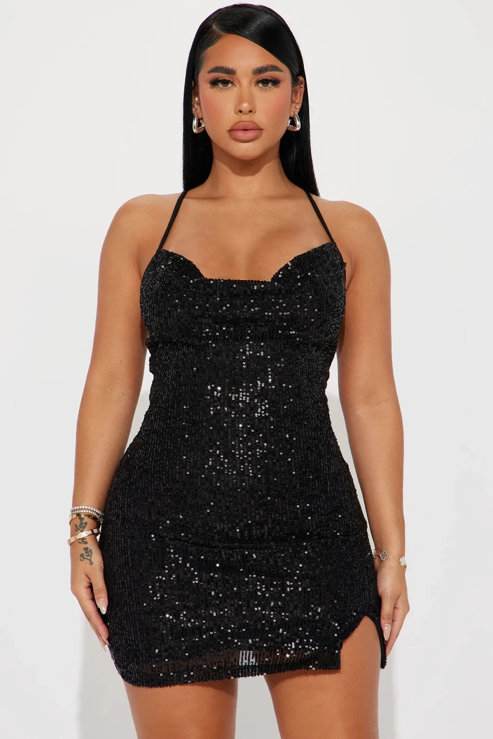 Fashion Nova Black Sequin Mini Dress with Side Slit