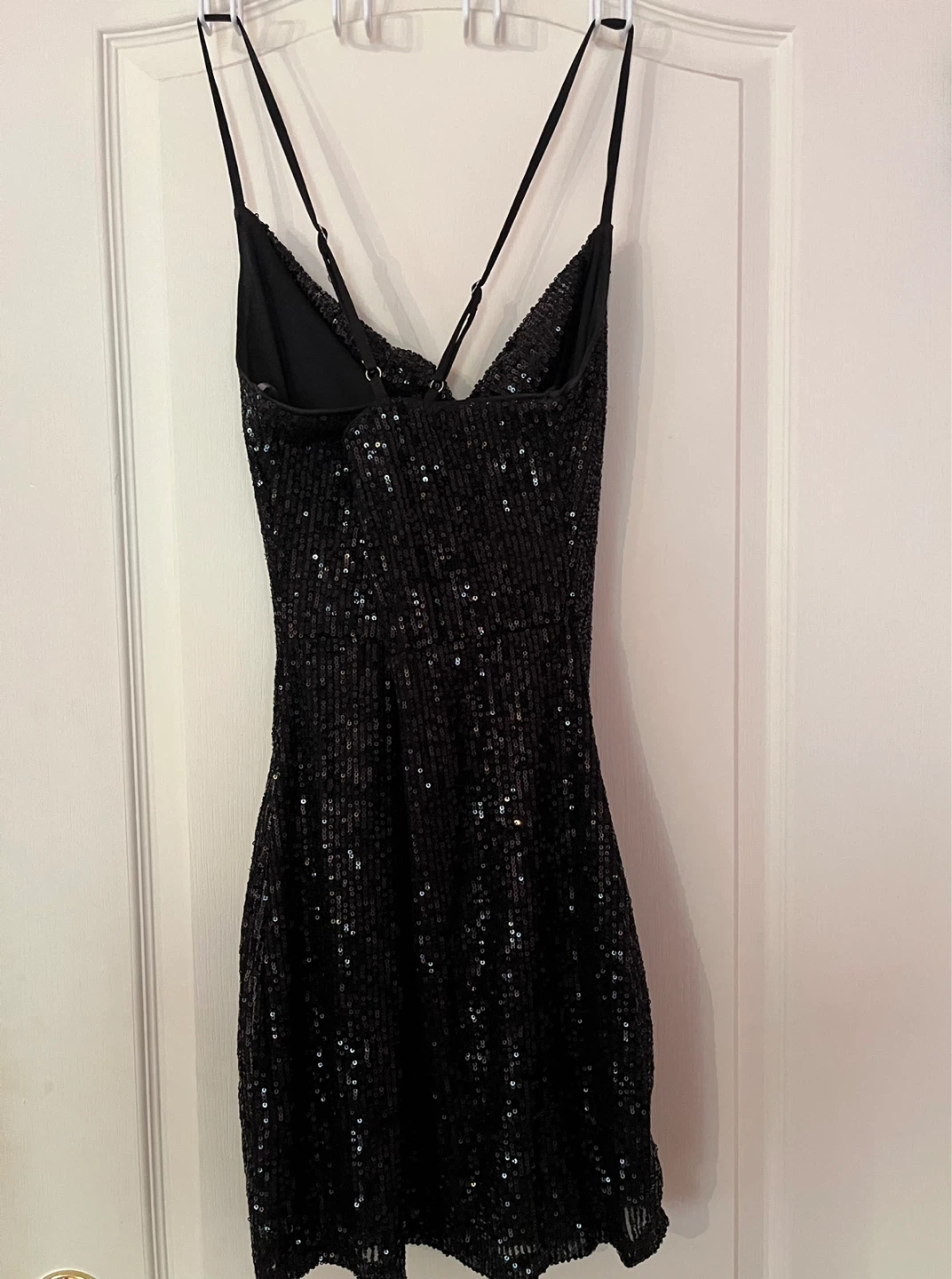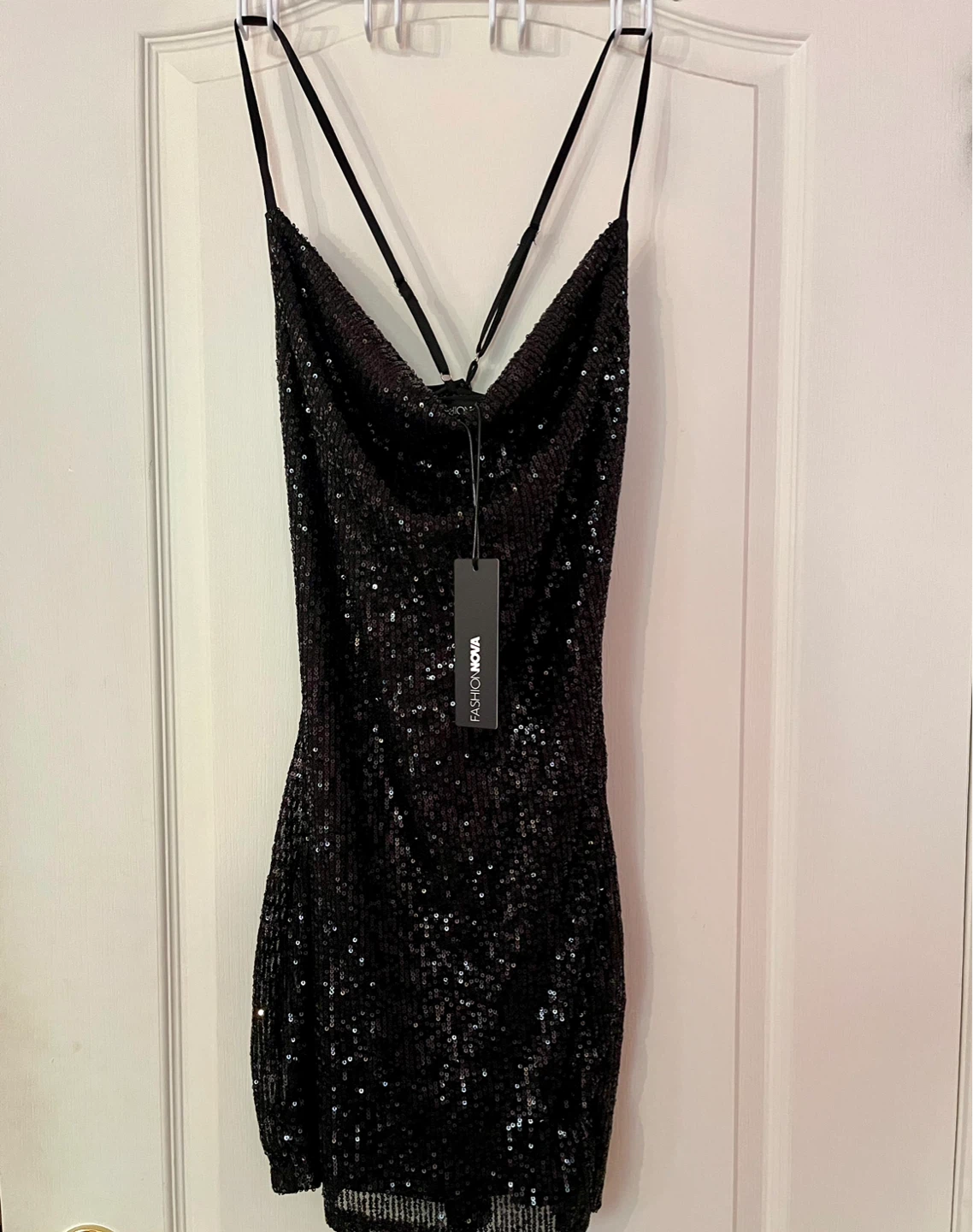Brand New Fashion Nova Black Sequin Mini Dress (With Tags). Size Small but could fit a Medium, straps are adjustable. Currently sold out on Fashion Nova Website.
