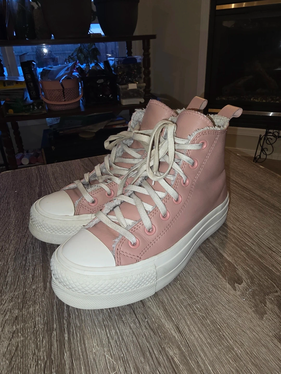Converse All Star Pink Platform Leather Shoes π₯