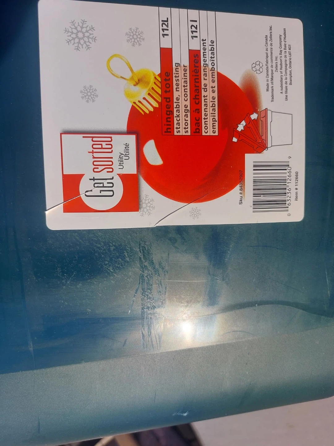 Selling a Get Sorted hinged tote, perfect for storage! It's a stackable, nesting storage container with a 112L capacity. Great for keeping your belongings organized