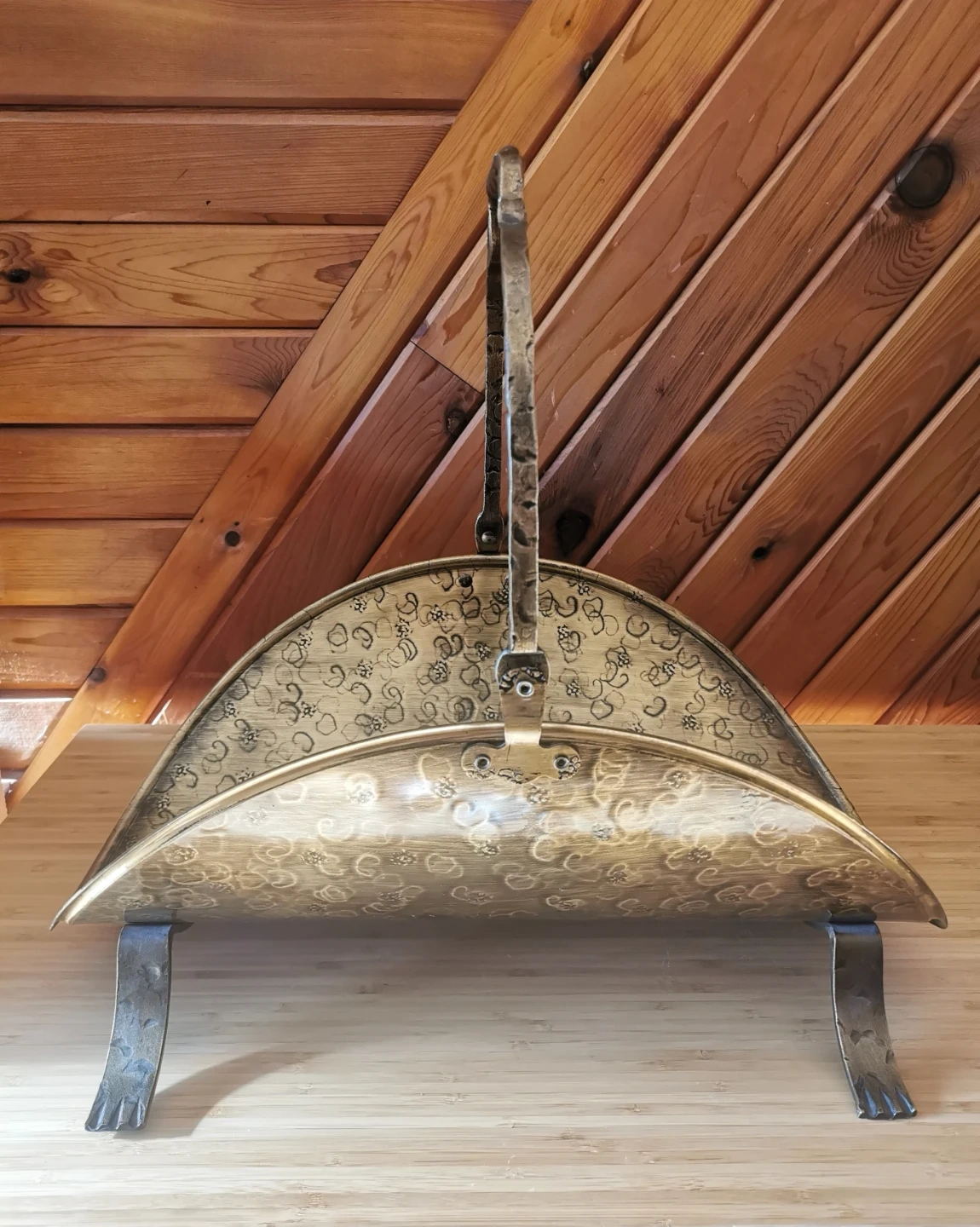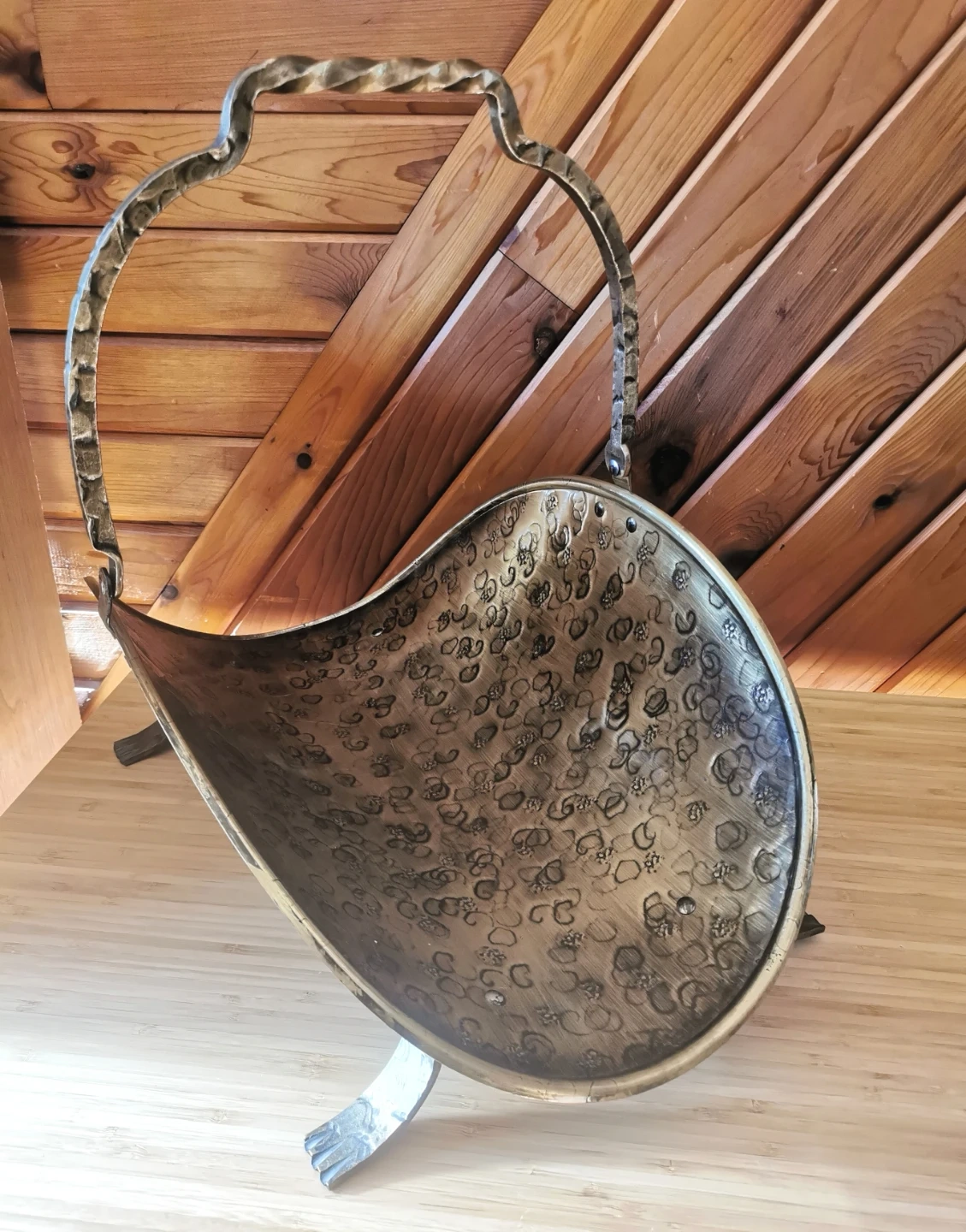 Versatile Rustic Hammered Brass Holder Suitable For Firewood, Fireplace Tools, Magazines, Blankets or Decorative Storage
