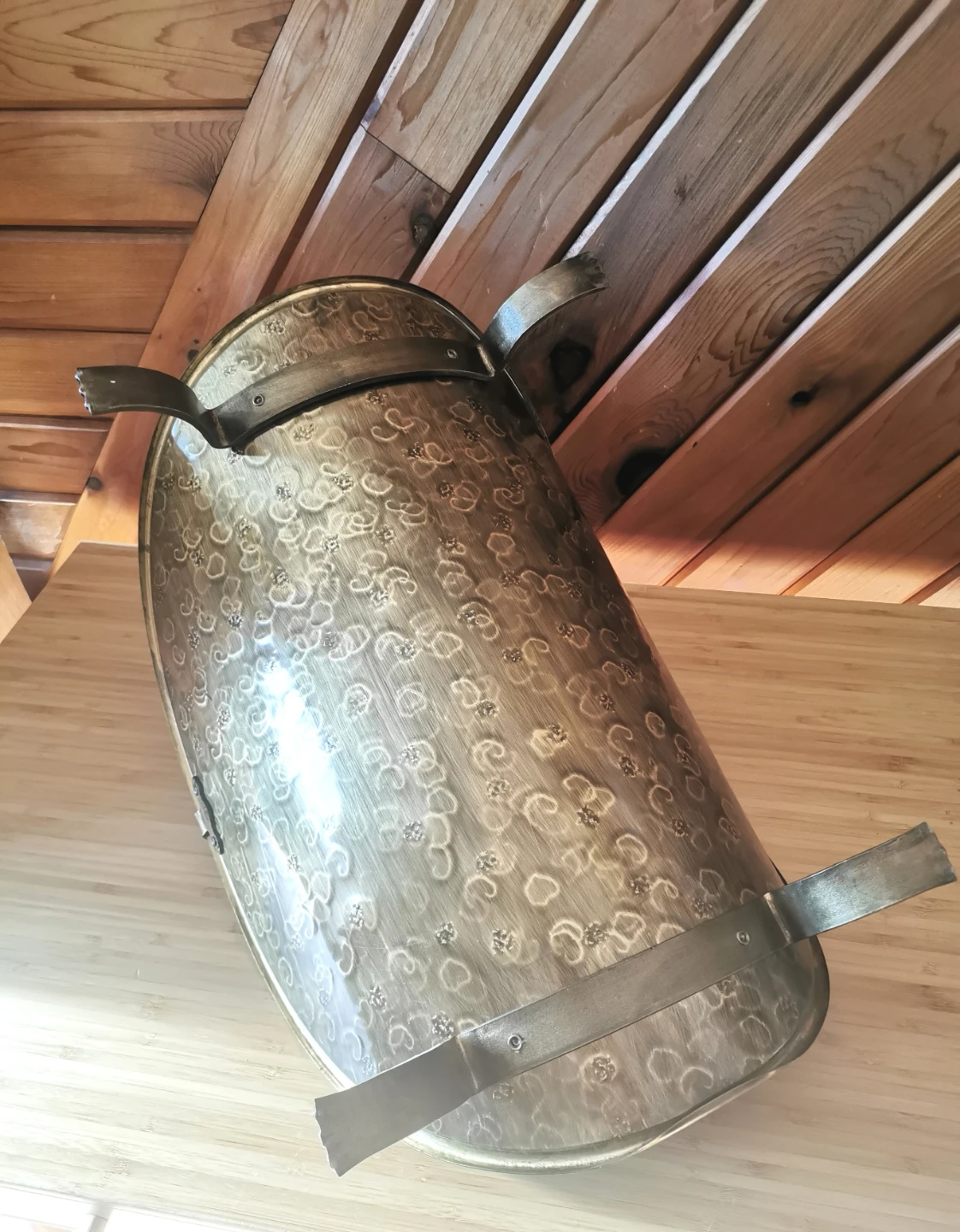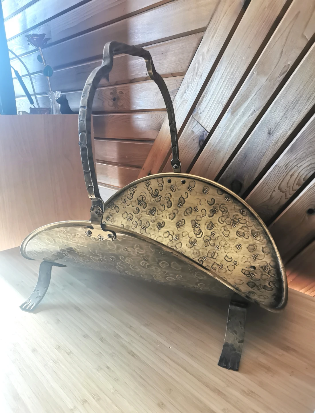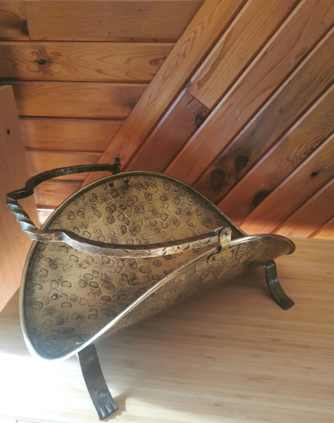 Versatile Rustic Hammered Brass Holder Suitable For Firewood, Fireplace Tools, Magazines, Blankets or Decorative Storage