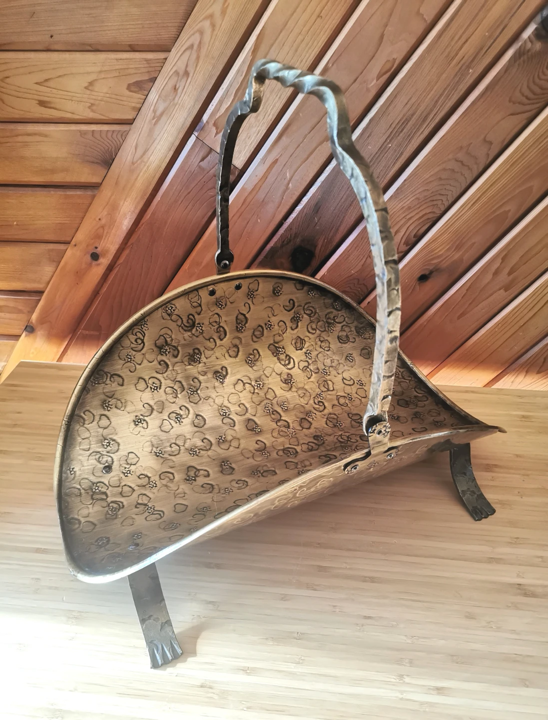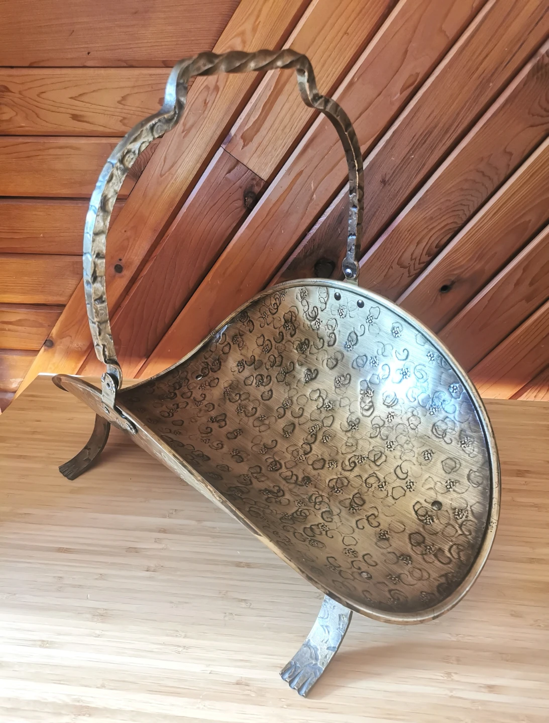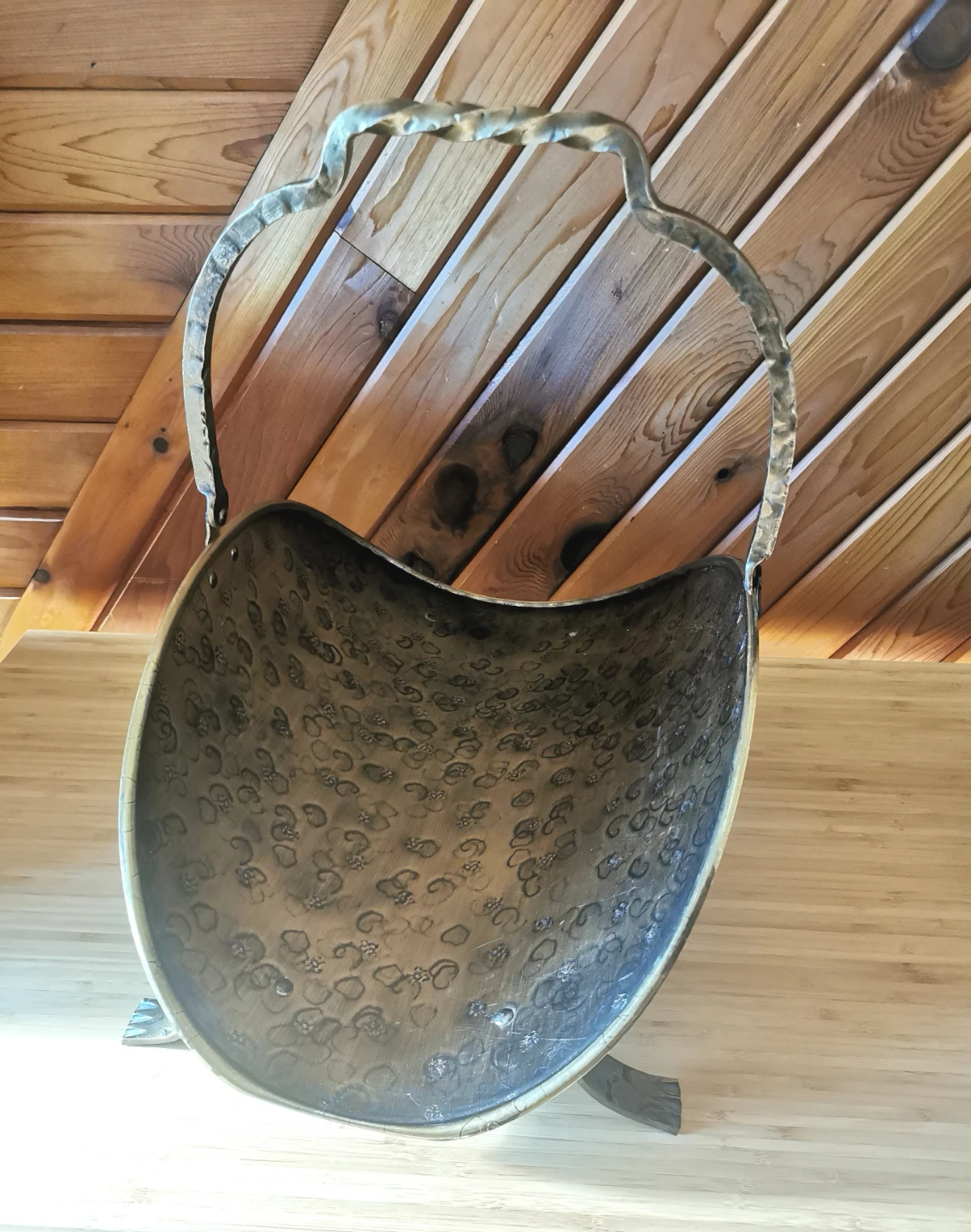 Versatile Rustic Hammered Brass Holder Suitable For Firewood, Fireplace Tools, Magazines, Blankets or Decorative Storage