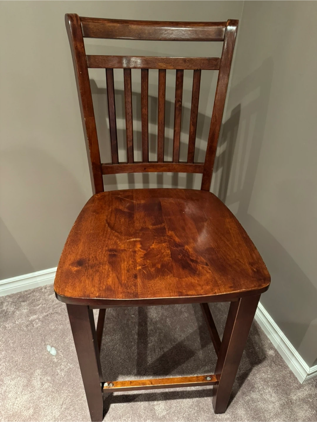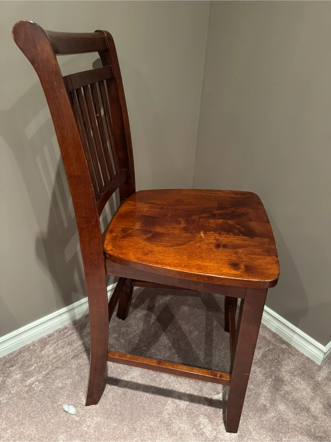 Buy & SellTwo Wooden Counter height solid wooden chairsTwo Wooden Counter height solid wooden chairs$60Counter height chairs with a warm, dark wood finish and slatted back design. $30 each for total $60.ConditionLike newWHERE TO MEETNottinghamView MapSELLERSavannahAjax322 reviews0 chats·0 favorites·4 viewsSEND CHAT TO SELLERHi Savannah! I’m interested in your listing.Hi Savannah! I’m interested in your listing.Get the Karrot app to chatSign In to chat
