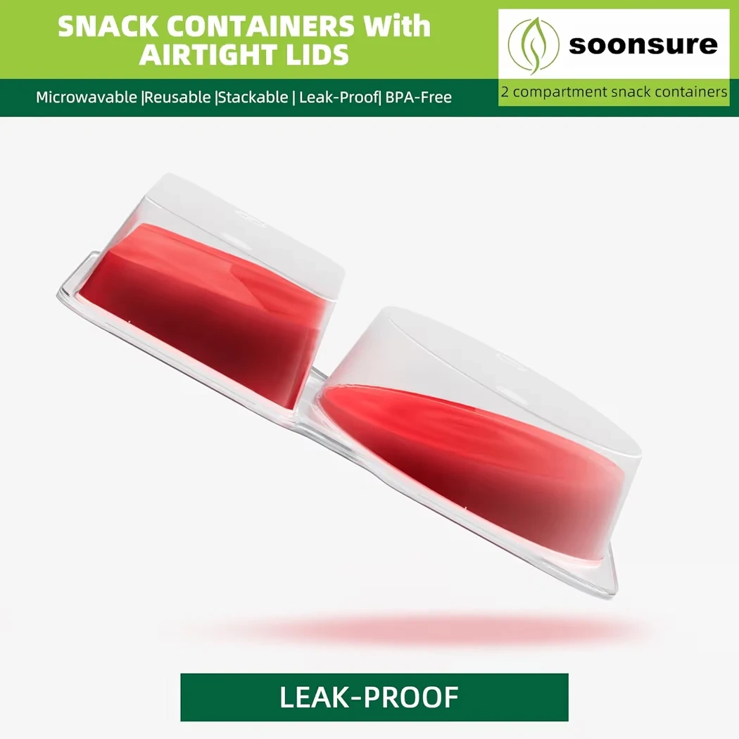 Soonsure 2 Compartment Snack Containers with Airtight Lids