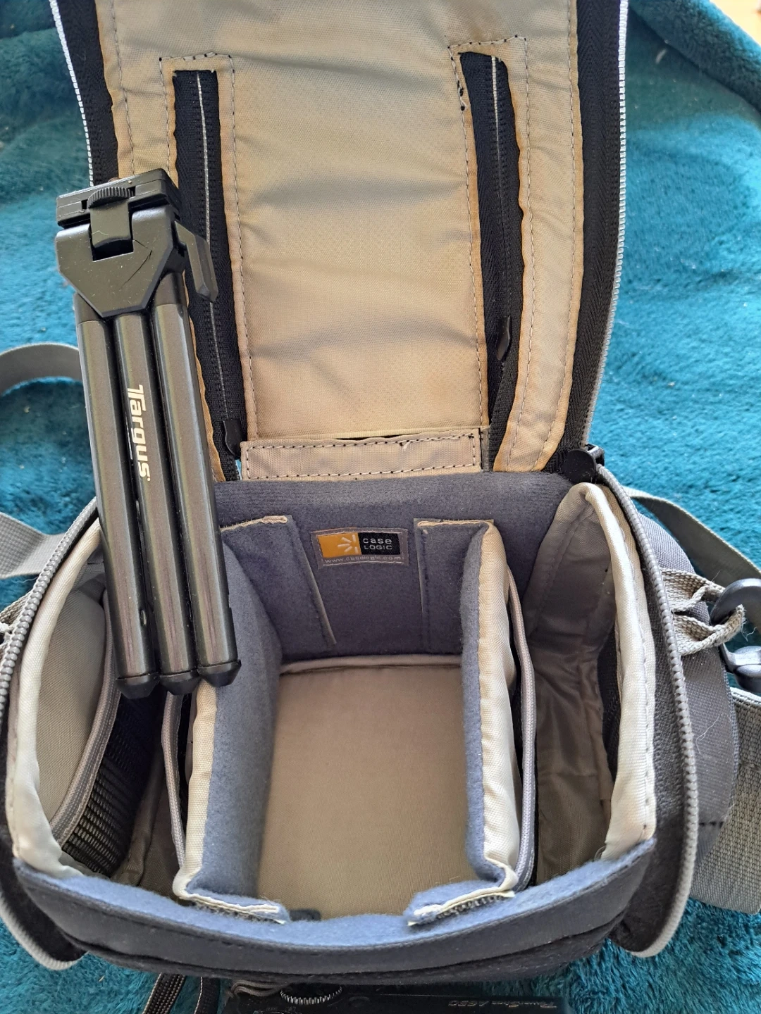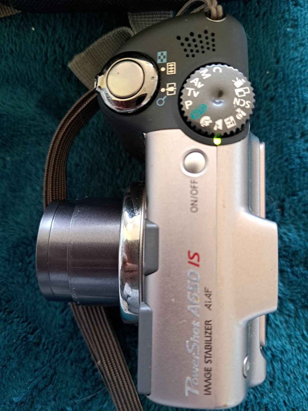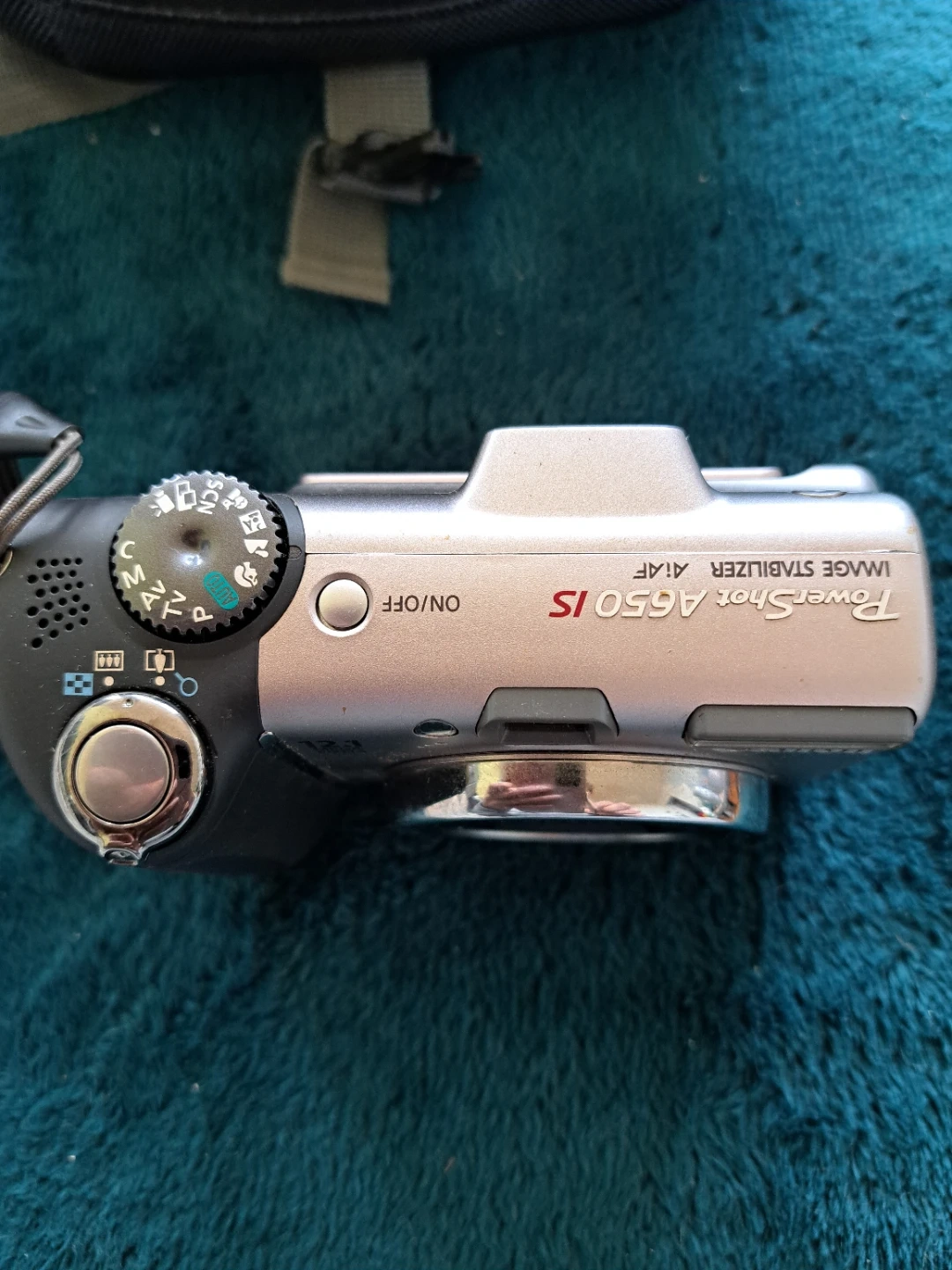 Canon PowerShot A650 IS digital camera with 12.1 megapixels and 6x optical zoom. Includes a Case Logic camera bag and a Targus mini tripod. The camera features image stabilization.