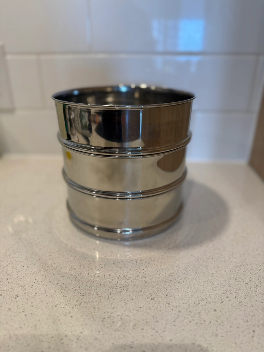 Three stainless steel stackable inserts for Instant Pot or Pressure Cooker. Perfect for cooking multiple things together.