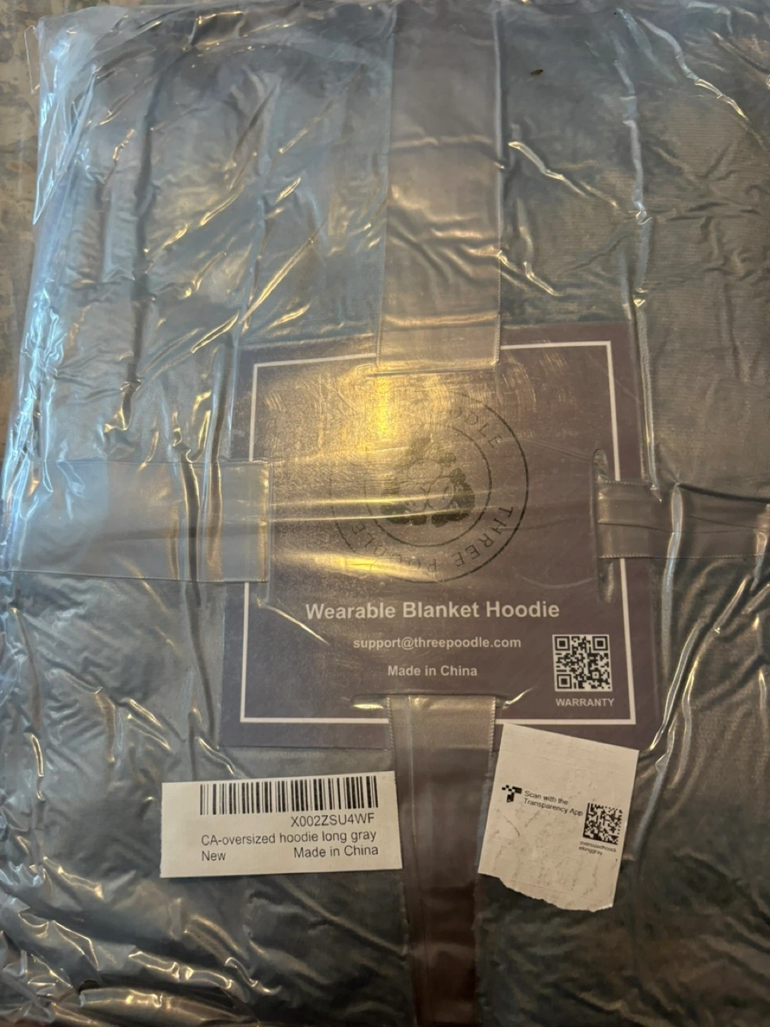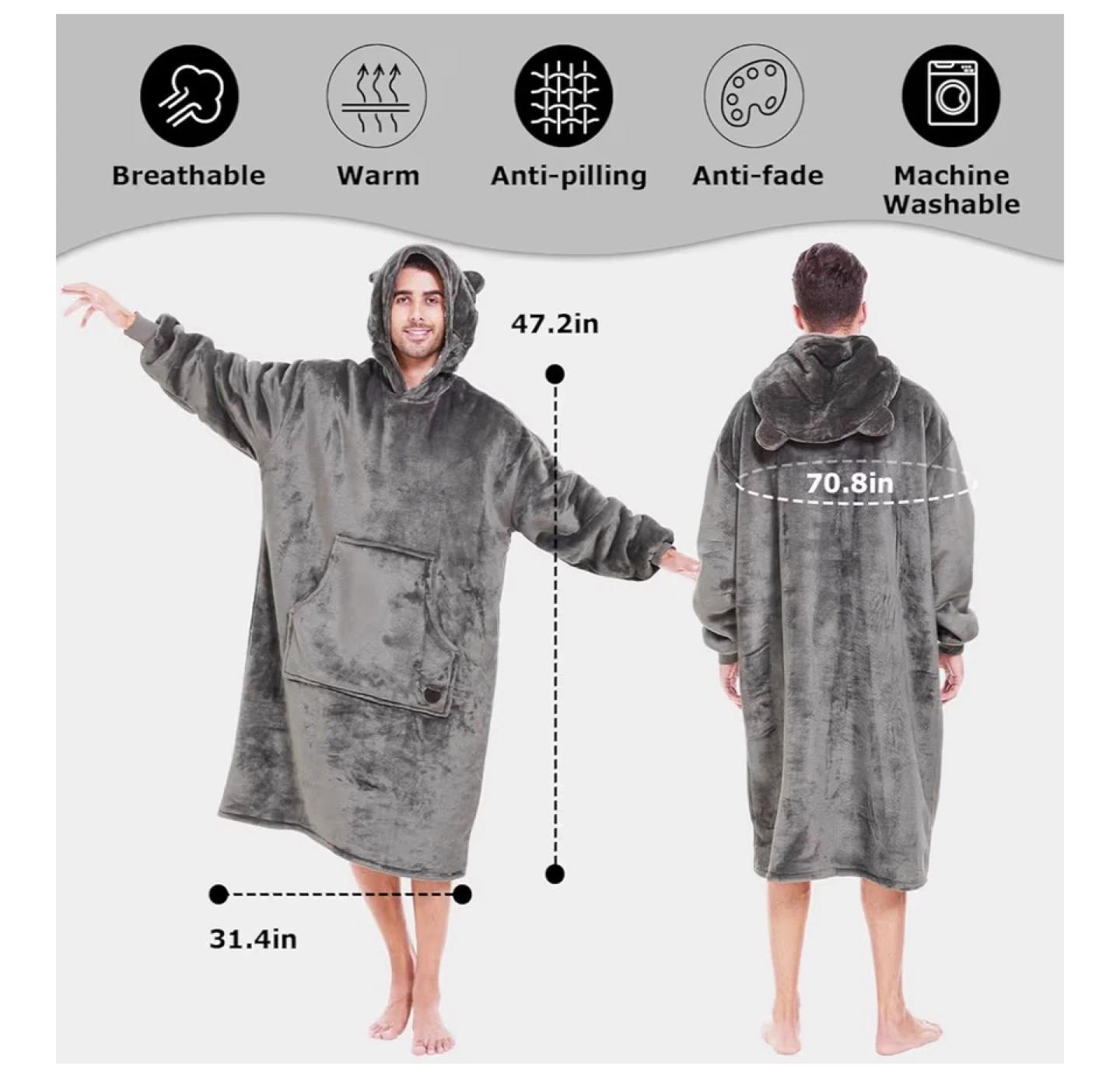 Super soft grey wearable blanket hoodie. It's made from plush material and has a large front pocket. Perfect for staying cozy on chilly days! Pickup/ cash only. SE Vancouver. Victoria Drive & E 61 Ave.