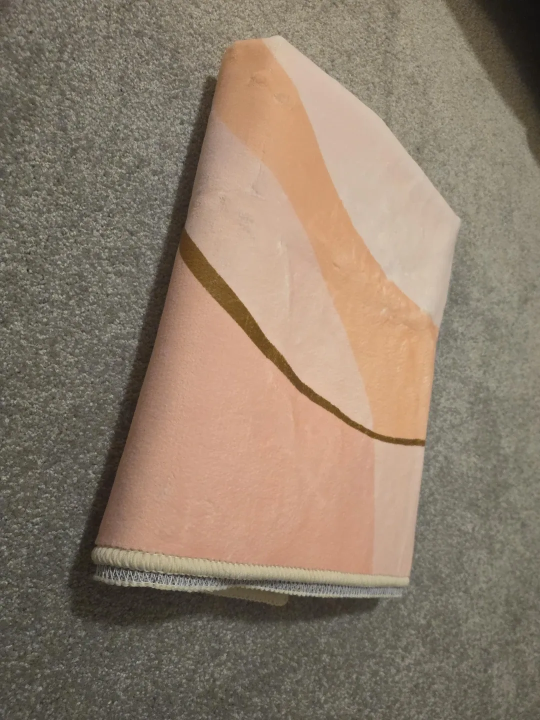 Rolled Accent Rug - Pink, Peach & Gold Abstract Design