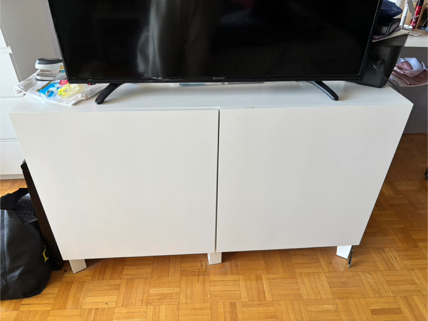 Selling a white IKEA TV stand/storage unit. It's in great shape and perfect for organizing your living room! Pick up only.