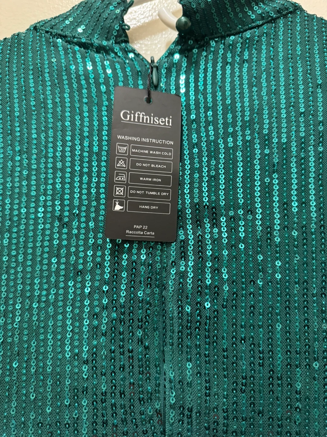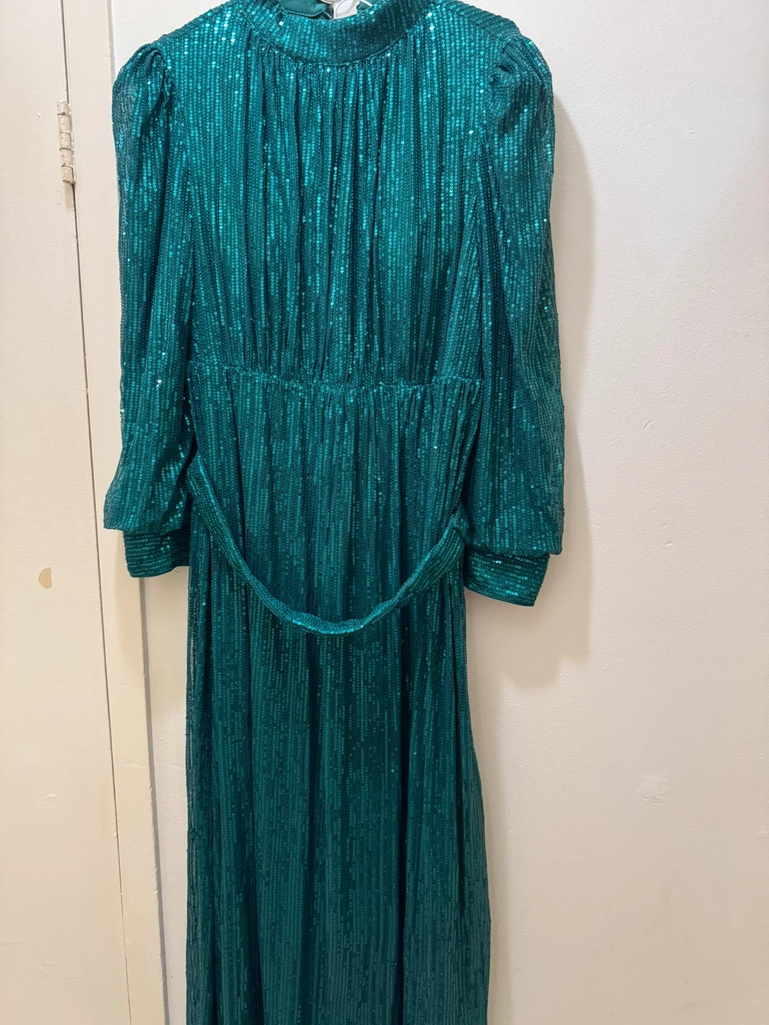 Selling a beautiful Giffniseti sequin dress in size XXL. The dress is a stunning green colour and features long sleeves and a belt. It's in great condition and ready for a new home! Washing instructions included: machine wash cold, do not bleach, warm iron, do not tumble dry, hang dry
