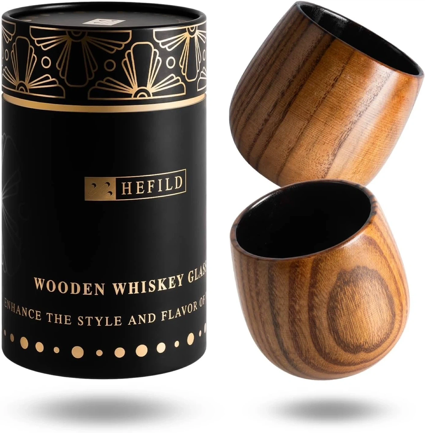 PREMIUM GIFT SET: Beautifully packaged in a vintage-style black gift box with gold foil detailing. Includes 2 handcrafted wood glasses — ready to gift.