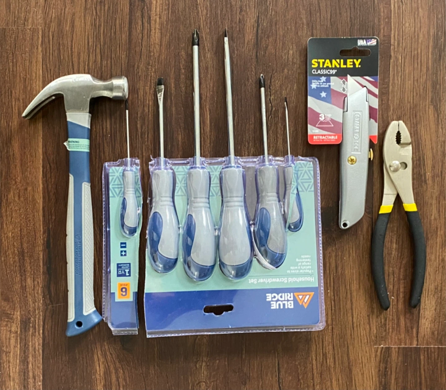 Selling a Blue Ridge screwdriver set with 9 pieces! Also included is a Stanley Classic retractable utility knife, and more! Great for a variety of household needs.