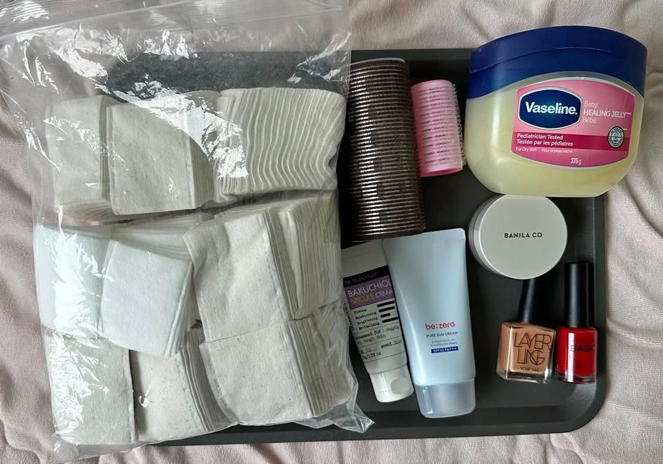 Mixed beauty bundle! Includes skincare, hair stuff, and makeup. Comes with a big tub of Vaseline Baby Healing Jelly, Dermafactory Bakuchiol Spicule Cream for firming and moisturizing, and be:zero Pure Sun Cream SPF42 PA+++. Also has a Banila Co compact, two nail polishes (Layer Ling and Basic), a big bag of cotton pads, and two hair rollers. Everything is full or mostly full. Expiration dates on creams are 2027. All in great shape. Most items are from Korea (except Vaseline). Located near Yonge Sheppard Centre. Cash only.