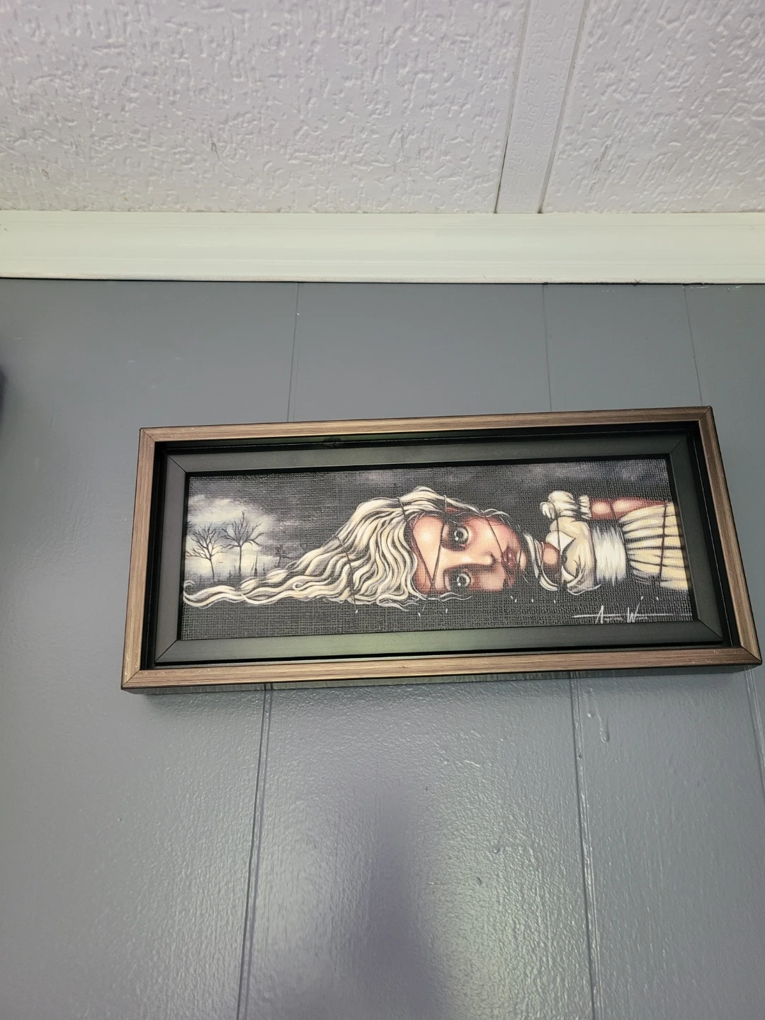 This collection features five unique framed art prints by Angelena Wrona, with a distinctive whimsical and gothic aesthetic. Each piece showcases a beautifully rendered doll-like figure with large expressive eyes, set against various atmospheric backgrounds. The prints are in different sizes and frames, adding variety to your decor. They're perfect for adding a unique touch to any room!