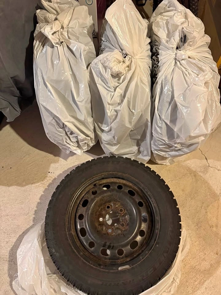 Selling as is, a set of winter tires purchased in 2023/2022 winter for sale, fair condition, two of the steel rims a but warped but the rubberis in good conditions and my assumption that they can last fir the next 2-3 years.