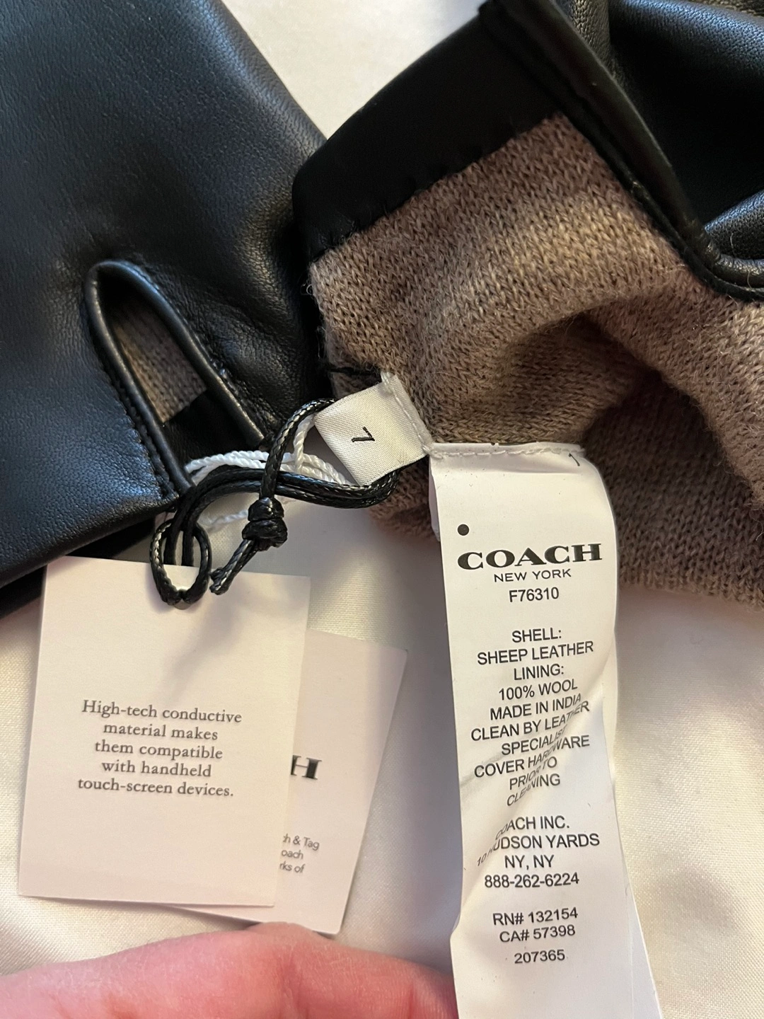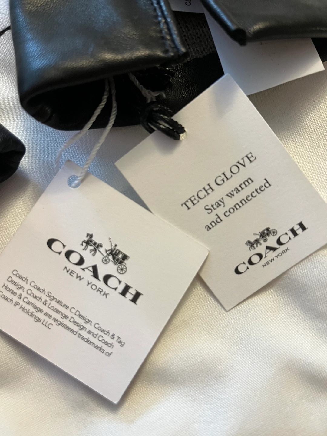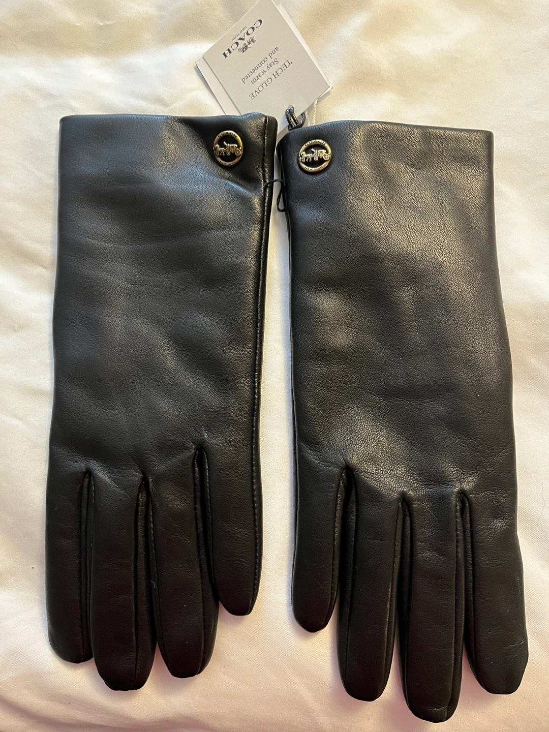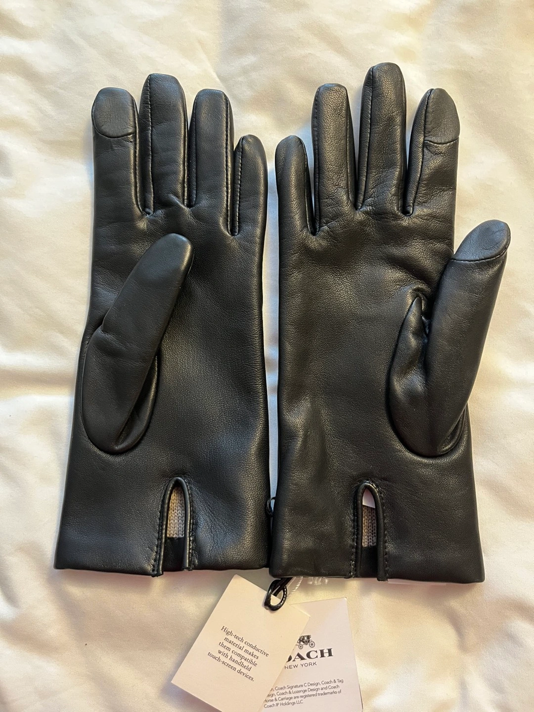 Brand New w/tags. Ladies COACH Leather Tech Gloves. Size 7. Butter soft Sheep Leather with 100% wool interior.