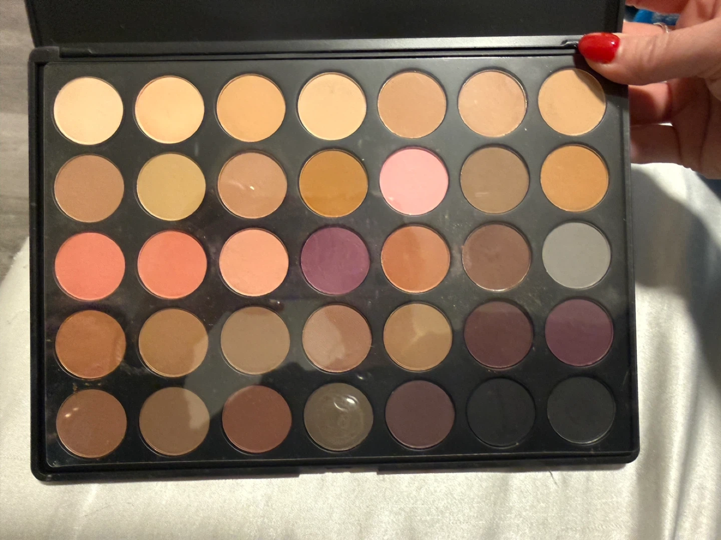 This Morphe 35N eyeshadow palette has 35 shades. It's a neutral palette with a variety of matte and shimmer finishes. This palette is great for creating everyday looks or more dramatic eye makeup!