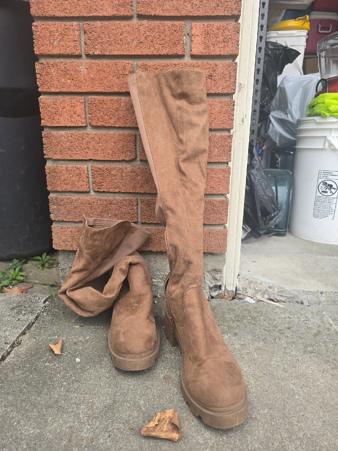 Selling a pair of brown thigh-high boots! They are in great condition and ready for a new home. Perfect for adding a stylish touch to any outfit!