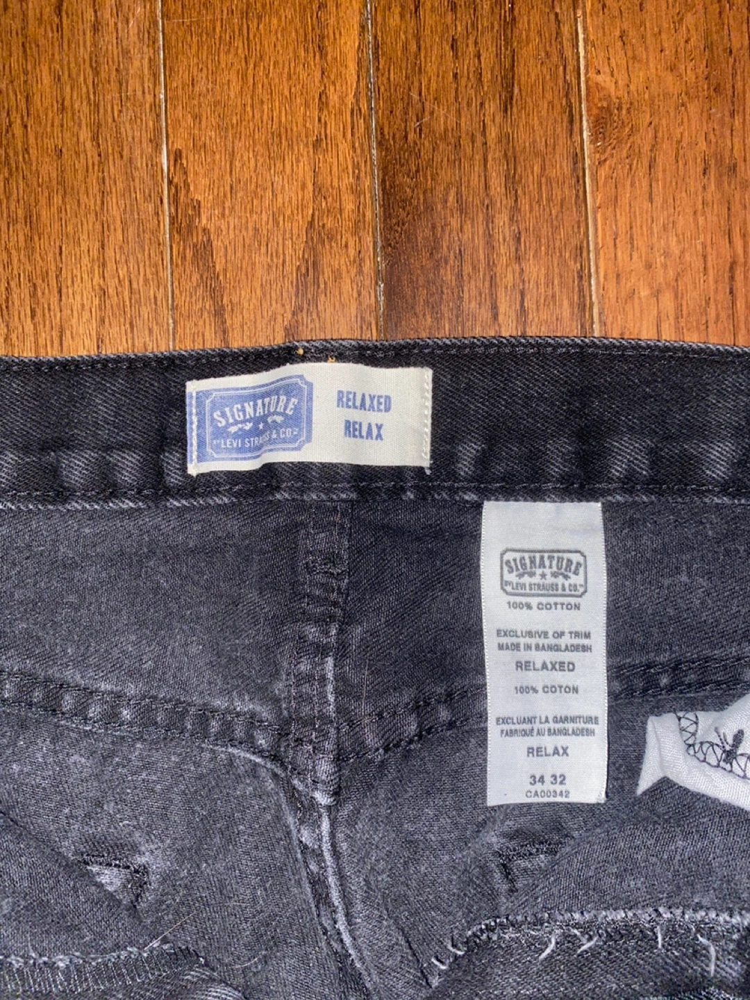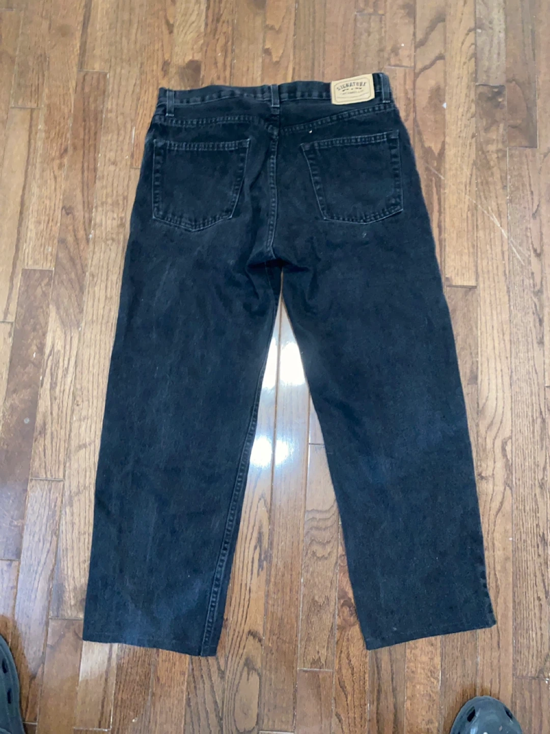 Signature by Levi Strauss & Co. relaxed fit jeans in black. Made with 100% cotton. Waist size 34, inseam 32 but I got it shortened and hemmed to a 31ish. These are a comfortable everyday jean.