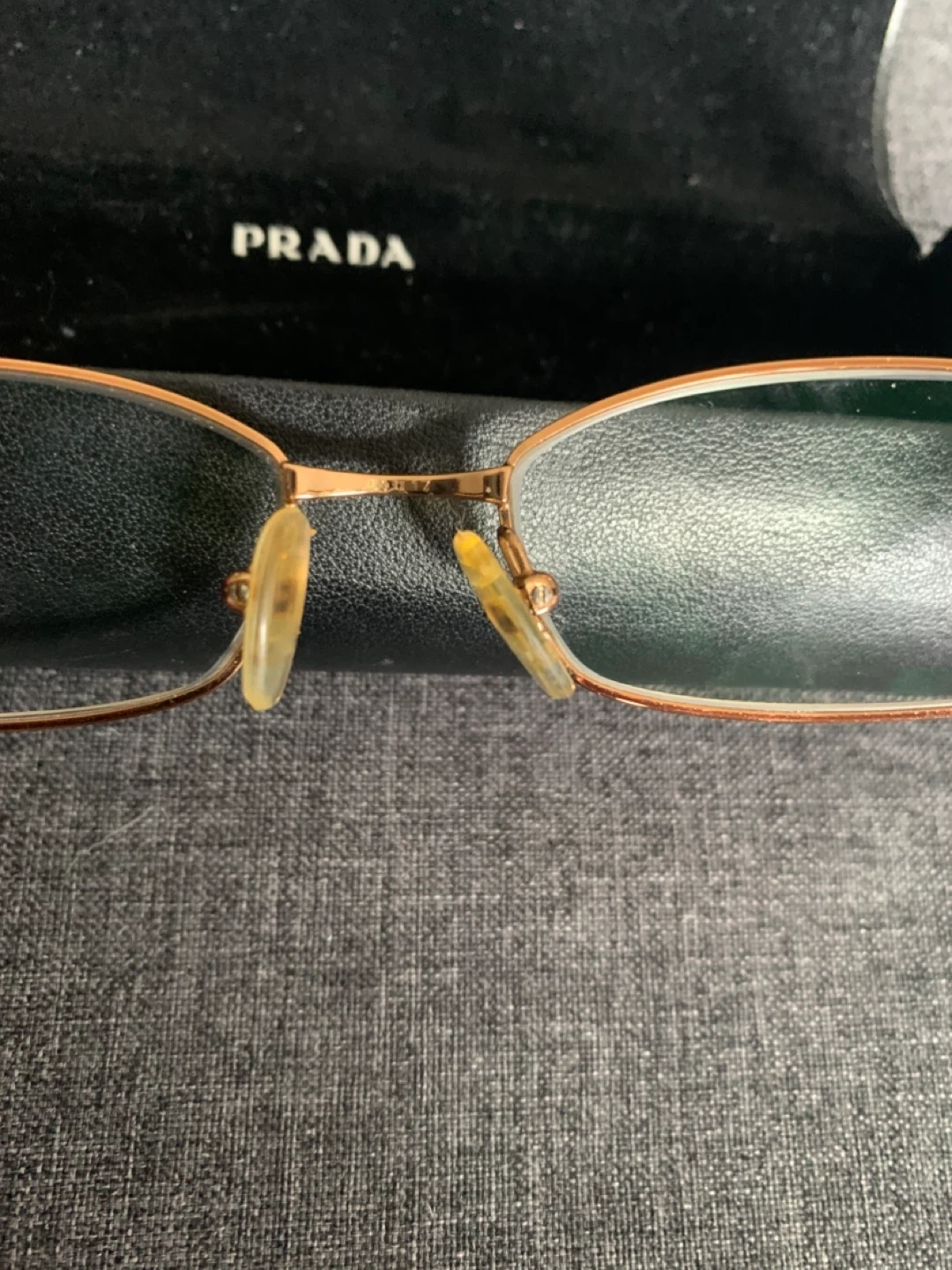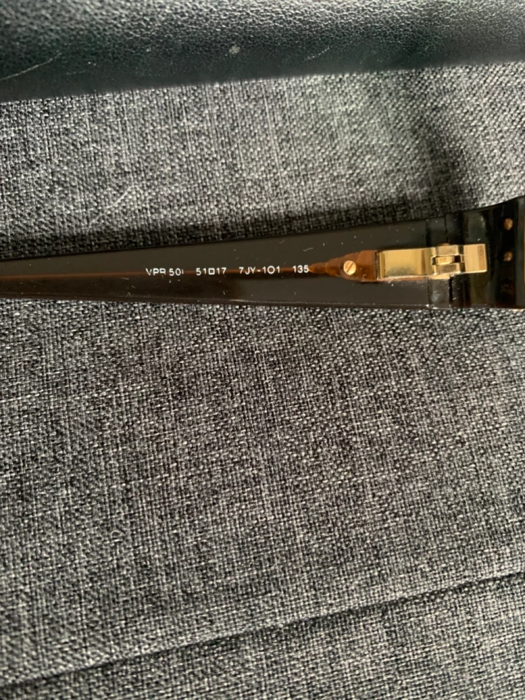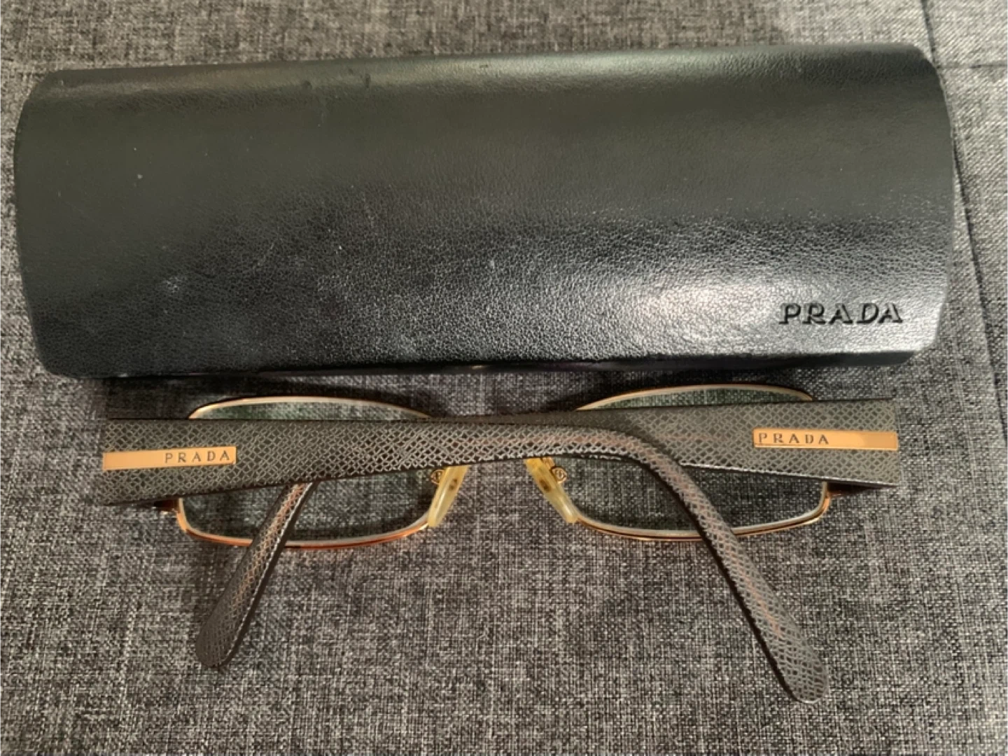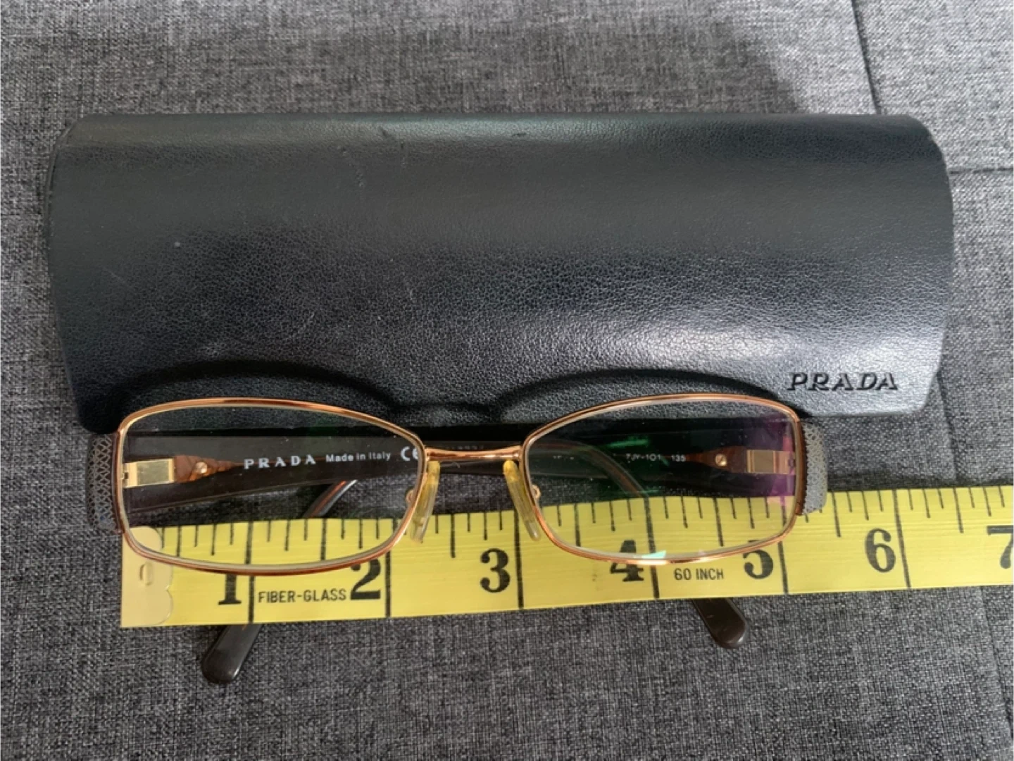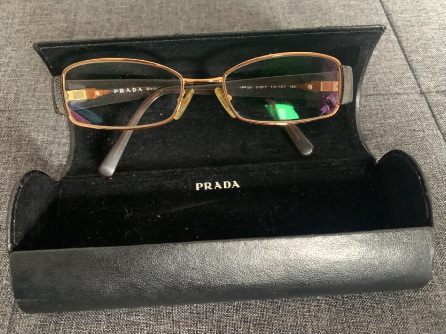 Selling a pair of Prada eyeglasses, model VPR 50I. They come with a case for safekeeping. The size is 51口17 7JY-1O1 135.